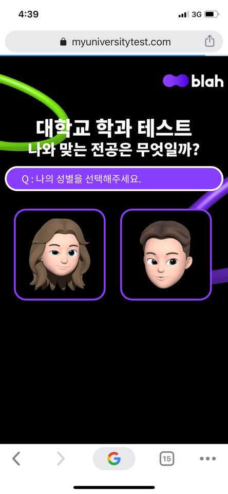 처음에는 성별을 누르는 질문이네요!!!