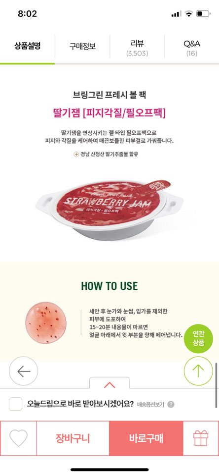 프링그린 프레시볼팩 딸기잼은 필오프팩이에요!!! 씻고 바른 후 떼어내는 방식으로 사용하는데요!! 효능은 피지와 각질을 제거하는 것이 주요한 역할이에요!!
