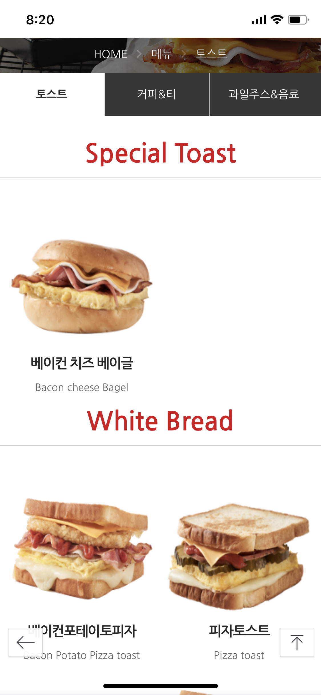 이게 이삭토스트 홈페이지의 메뉴에요!! 베이컨 치즈베이글 // 베이컨 포테이토피자 // 피자토스트