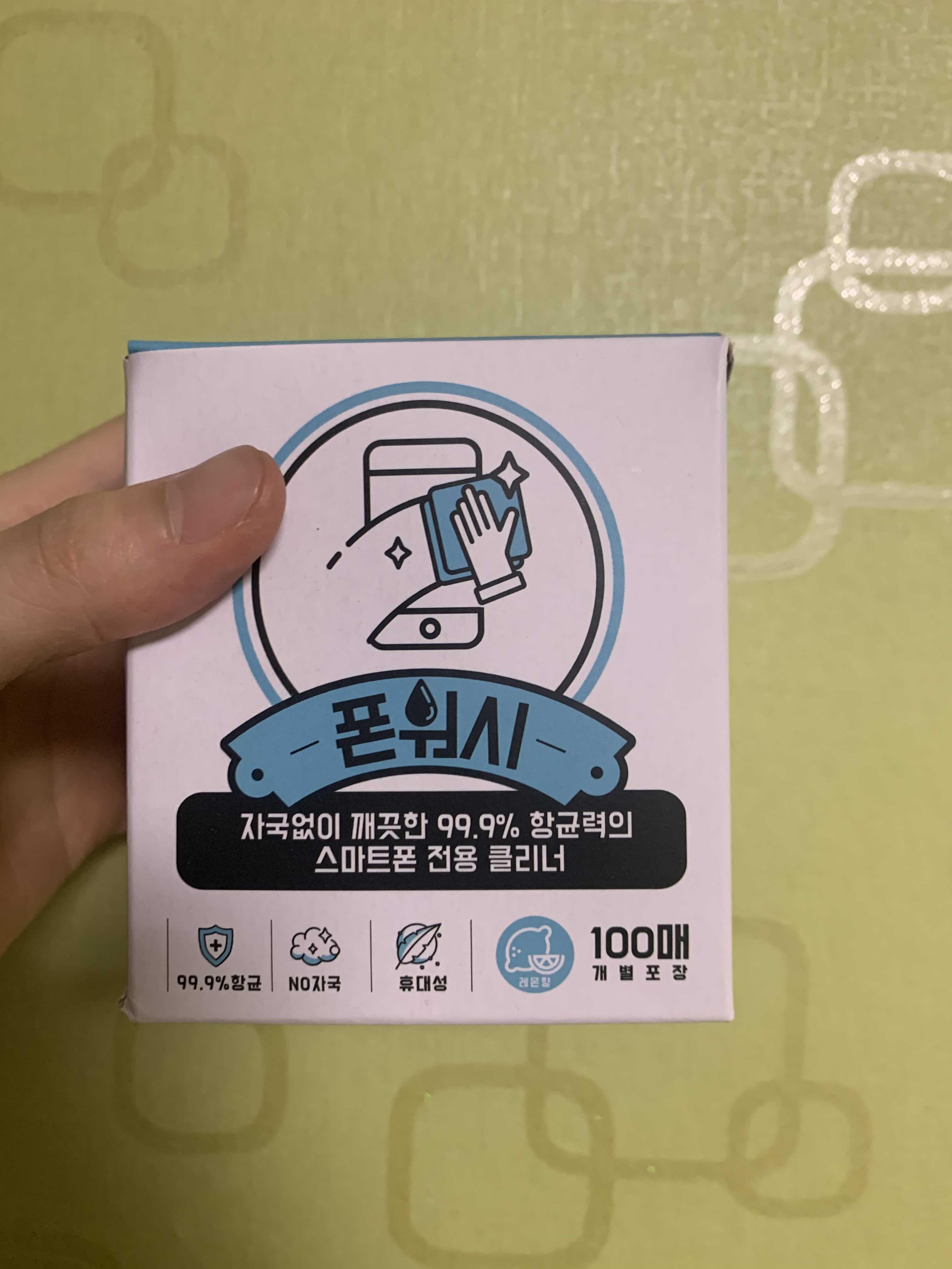 이렇게 1피스짜리가 100개가 들어있어요!! 개별포장이 너무 편리해서 회사에 가져가 회사 직원분들께도 많이 나눠주고 스마트폰 자국을 없애라고도 하고.. ㅎㅎ!! 어쨋든 요즘 코로나 시대로 인해 청결이 최 우선시 되는 시대에서 가장 많이 만지는 스마트폰에 대한 청결도 유지하고 싶으신 분들은 폰워시 스마트폰 클리너를 사용해 보세요!!