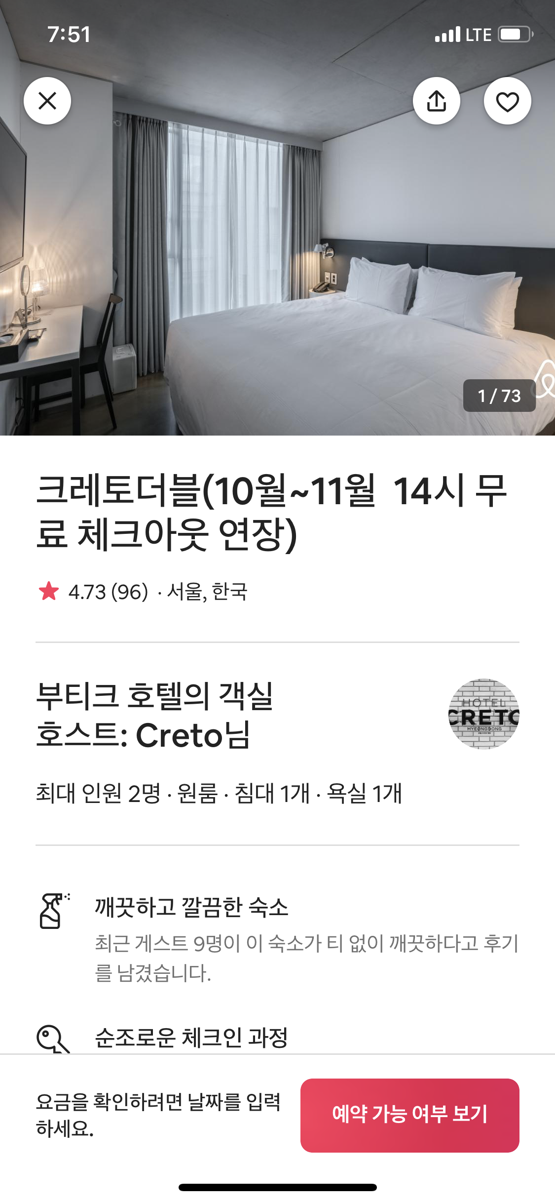 안녕하세요!! 오늘은 명동 에어비앤비 추천 크레토 호텔입니다.!! 서울에서 갈 곳을 찾고 검색을 하다가 발견한 명동 에어비앤비 추천 크레토 호텔입니다!! 크레토호텔은 요즘 이벤트로 Late checkout 서비스를 제공하고 있는데요!! 그래서 거의 이용시간이 하루가 넘어가요… 정말 좋은 시스템.. 잠이 많은 저에게는 꼭 필요한 것입니다!!