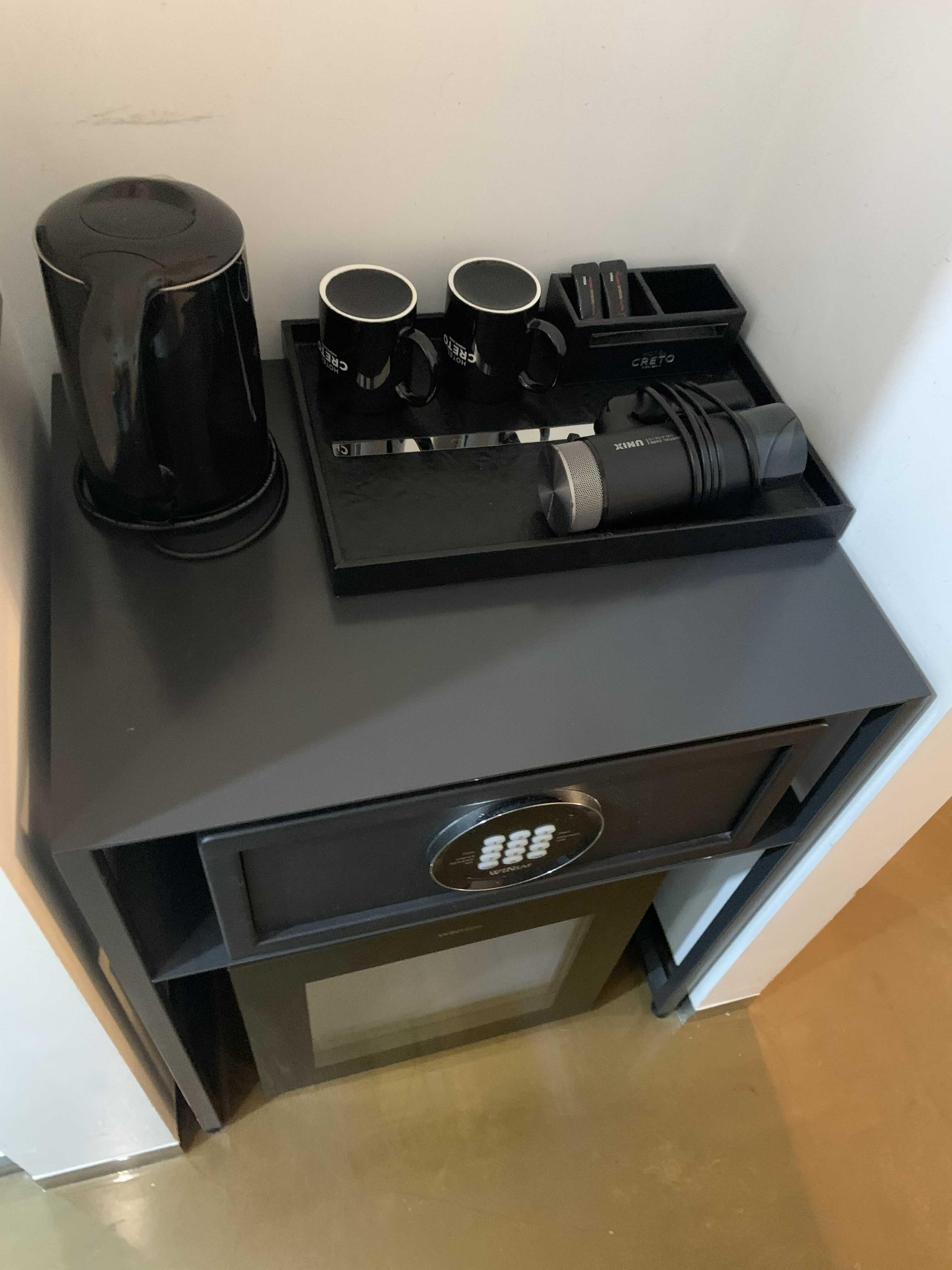 한 구석에는 이렇게 커피를 먹을 수 있는 Tea공간과 드라이기가 있습니다. 사실 이러한 숙소에서는 저는 커피 및 녹차 등을 먹지 않습니다.. 그냥 그 컵을 사용하고 싶지 않더라고요!! 그래서 그냥 냉장고에 있는 물만 …. ㅎㅎ. 명동 에어비앤비 추천 크레토 호텔에도 역시 냉장고에 물 2병이 들어있었어요!!
