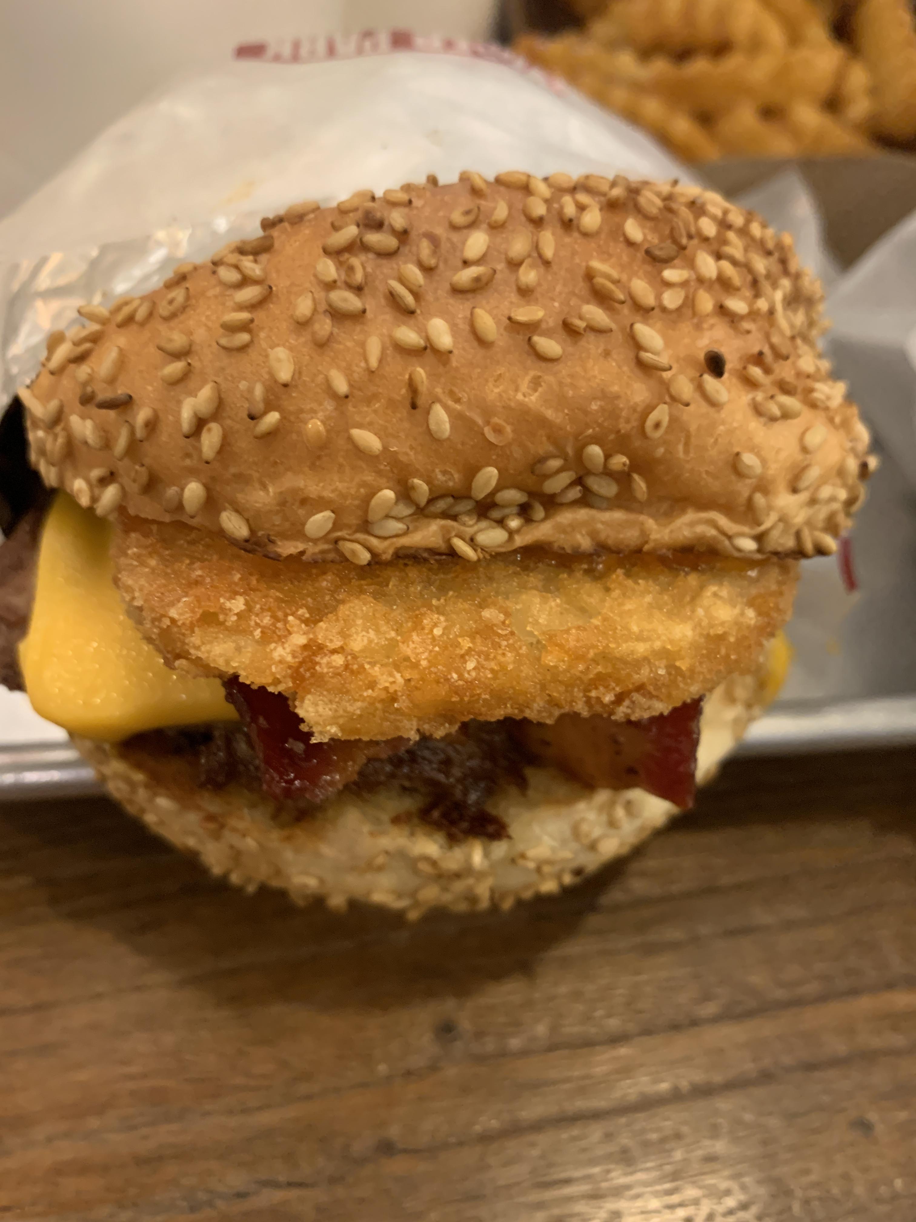 해쉬 베이컨 버거는 해쉬브라운과 짭짤한 베이컨이 들어있습니다 ㅎㅎ 너무 맛있더라고요!! 야채는 많이 들어있지 않지만 ... 그래도 미국식 수제버거 느낌이 납니다 ㅎㅎ