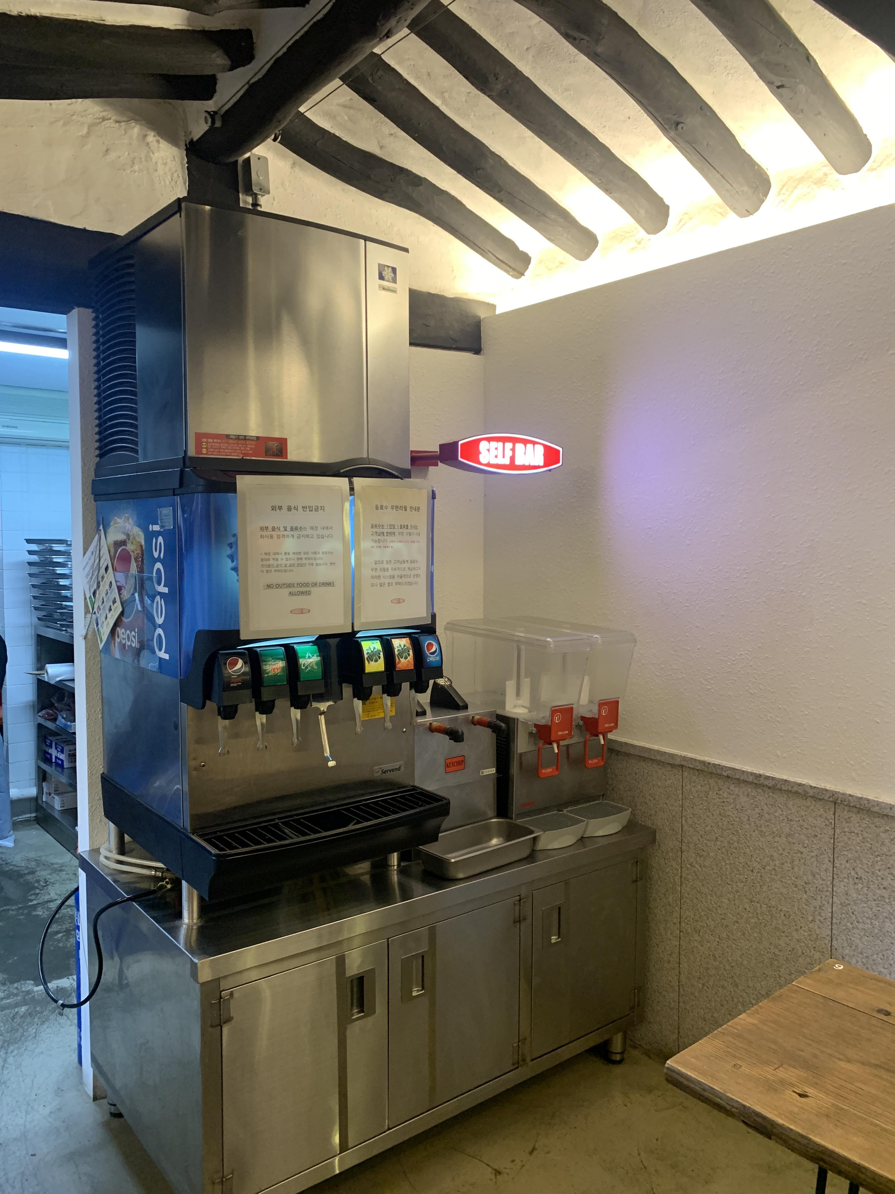 여기 혜화 버거파크에는 세트를 시키면 음료가 무한으로 이용이 가능합니다 !!@ 케찹도 옆에서 짜서 먹는 기계인데 처음봤습니다 !@@ 미국을 다녀온 친구가 말하기를 저런 기계가 미국에는 많다고 하는데 ... 저는 미국을 가본적 없어서 이 기계를 혜화 수제버거 맛집!! 버거파크에서 처음봤습니다@@