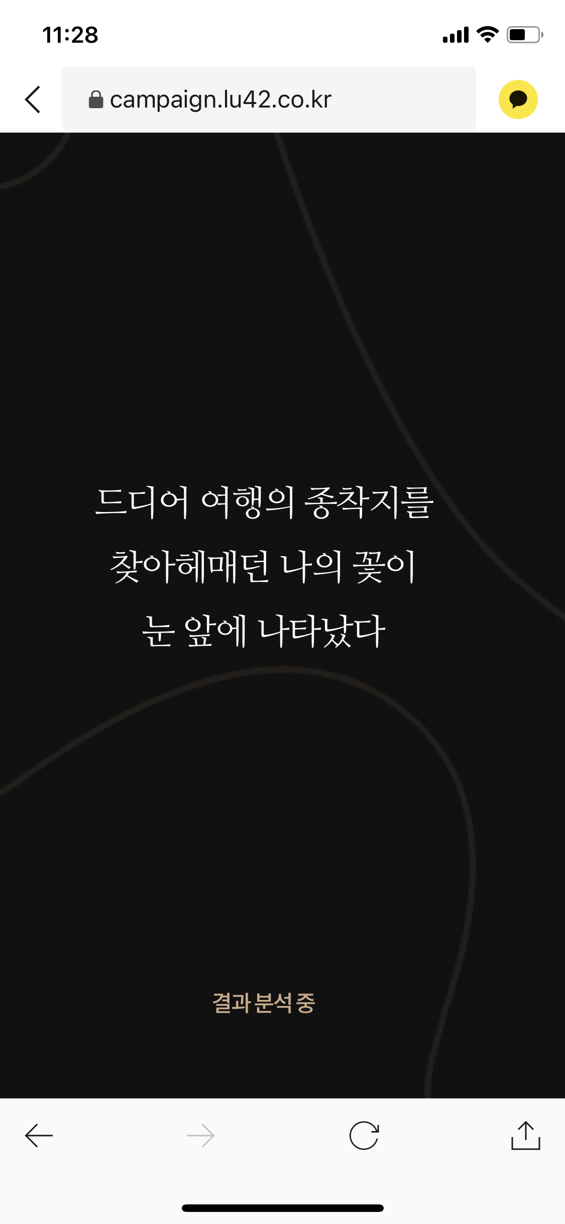 이렇게 질문을 다 답하면 “드디어 여행의 종착지를 찾아헤매던 나의 꽃이 눈 앞에 나타났다”라는 것과 함께 결과를 분석한다고 나옵니다!!