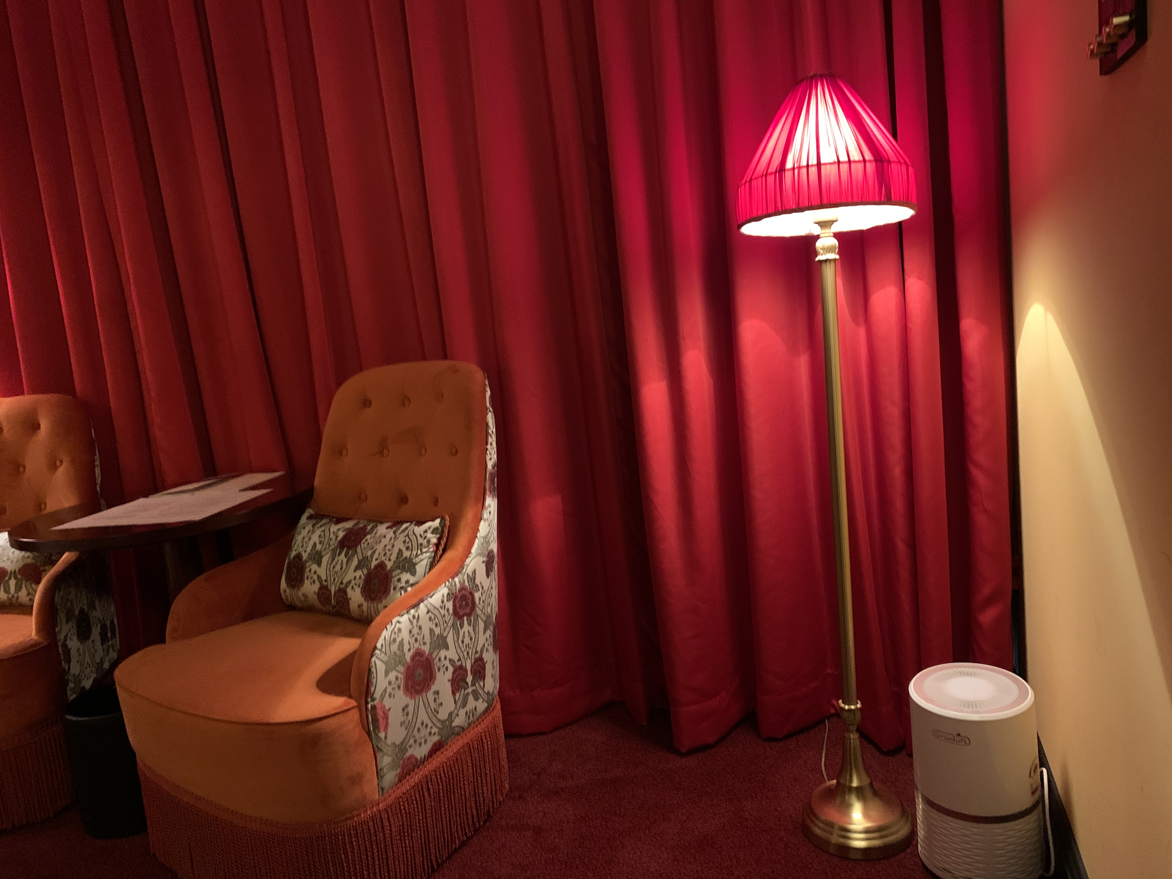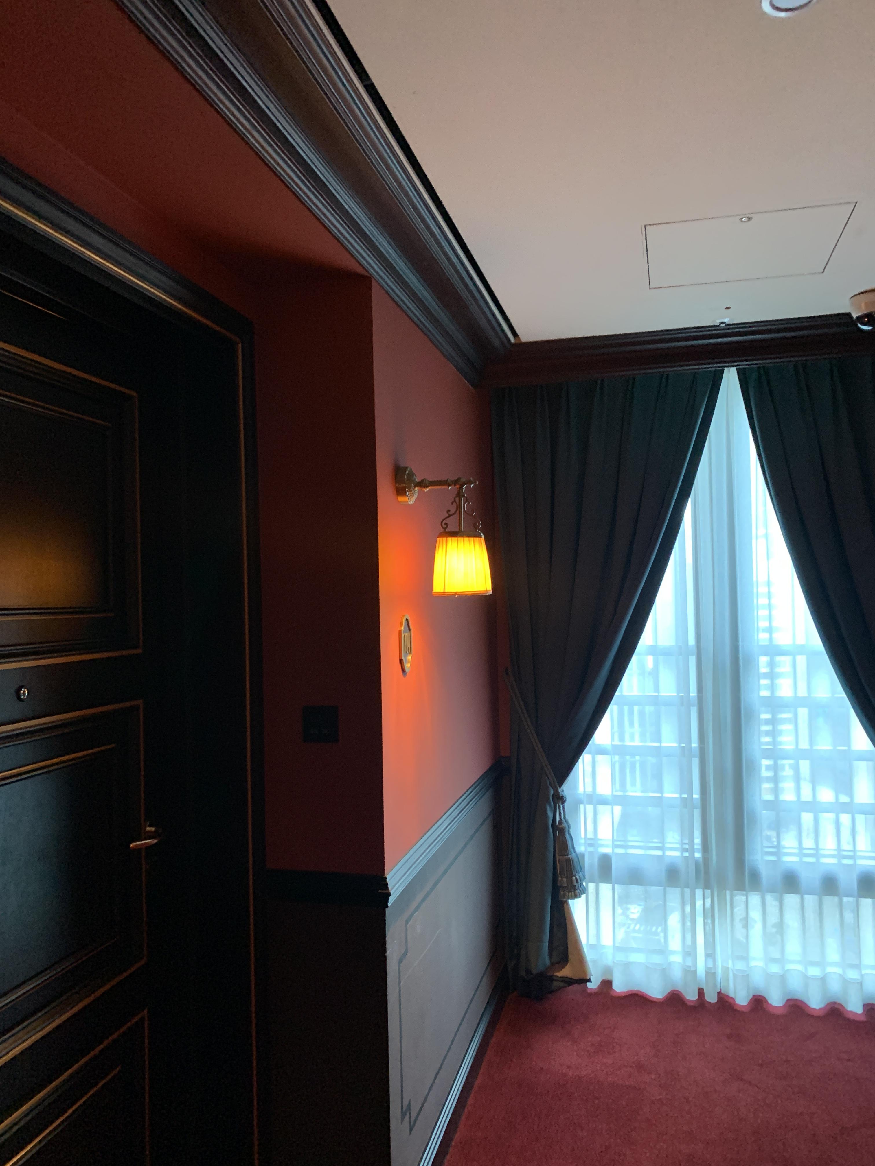 이제는 서울이색호텔 추천 명동 레스케이프 호텔의 객실내부에요!! 조명이 있고 이렇게 빨간색으로 꾸며놨어요! 엄청 진한 빨간색이지만 느낌이 있네요!! 공기청청기도 있고요!@