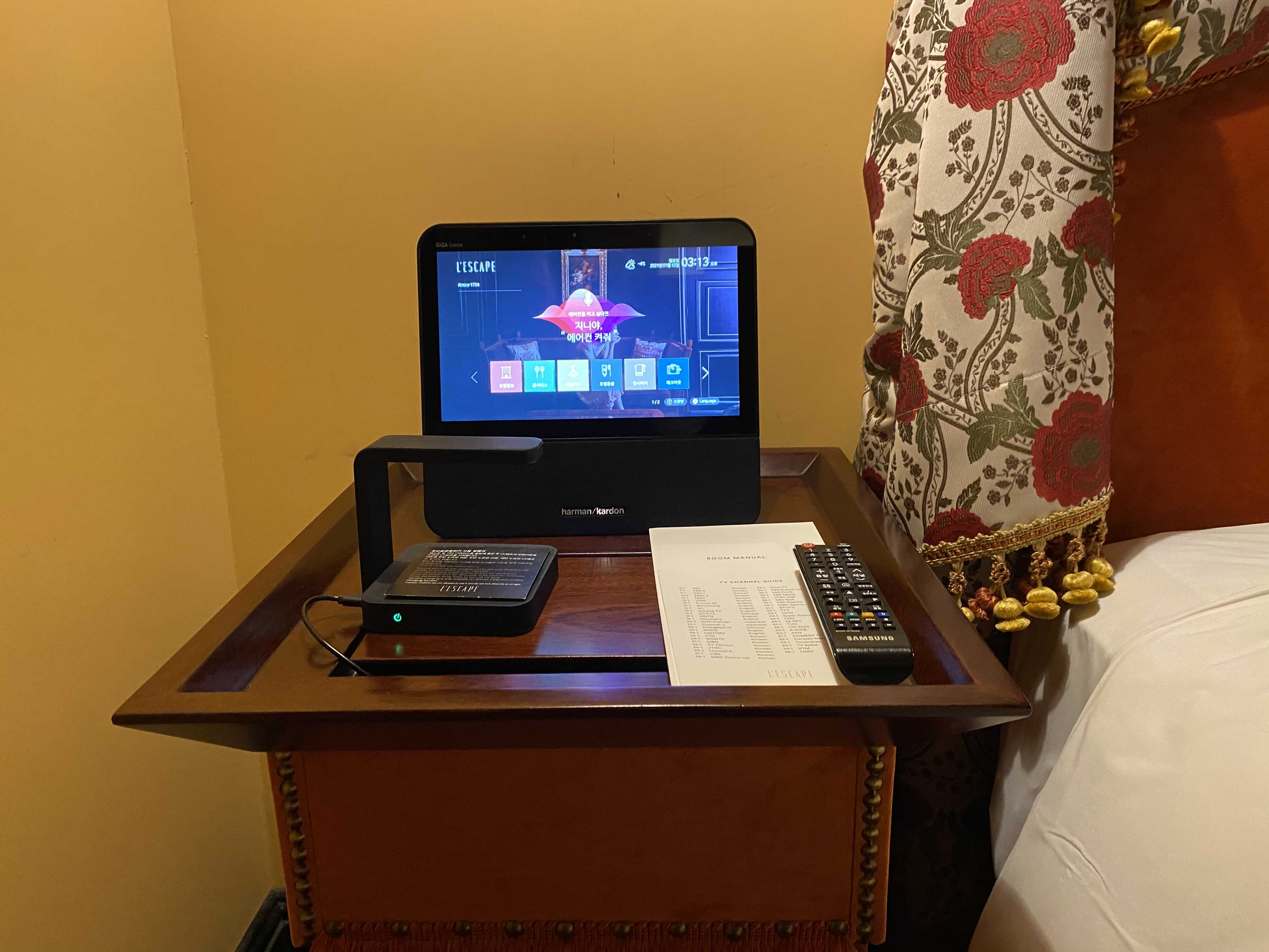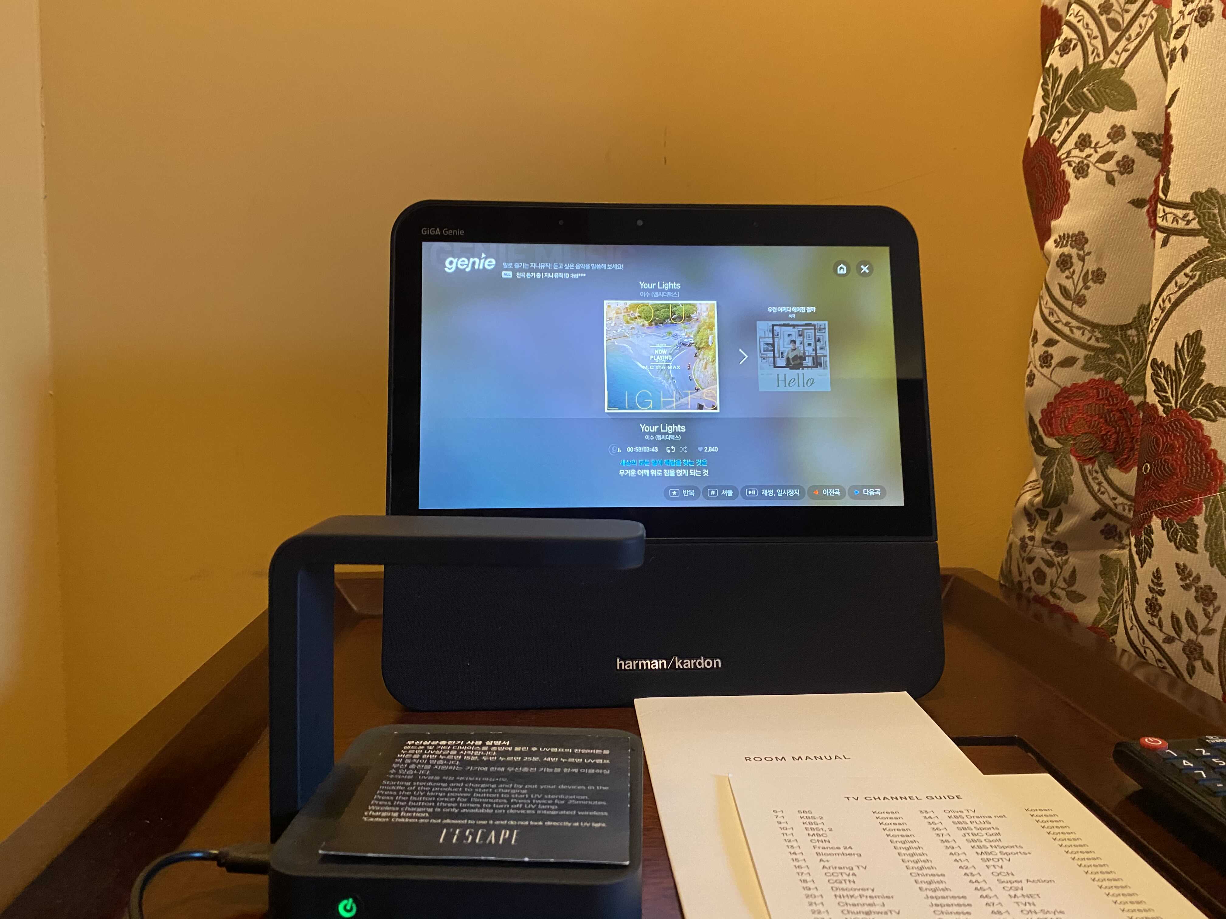 더 좋은 사실!! 서울이색호텔 추천 명동 레스케이프 호텔에는 지니가 있어요!! 지니를 집에서 사용해서 정말 편한데 여기도 지니가 있어서 좋네요! 다만 저희집 지니보다 말을 잘 못알아 듣는다는점..