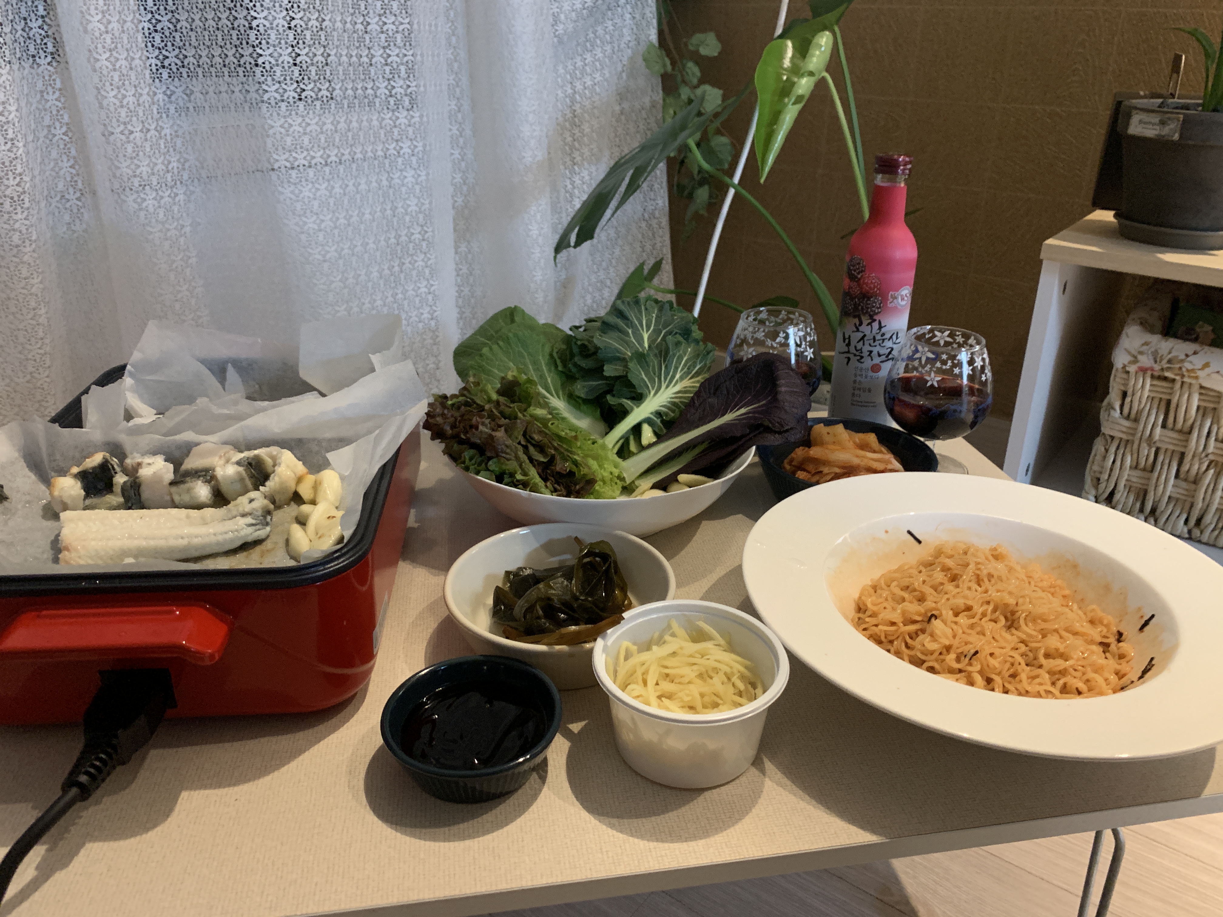 포장판매를 하는데 저희는 코로나때문에 포장해서 집에서 먹었습니다!! 장어는 2인에 35,000짜리 먹었고 장어탕은 구매하지 않았네요!! 명이나물은 집에 있는 것으로 먹었답니다~!