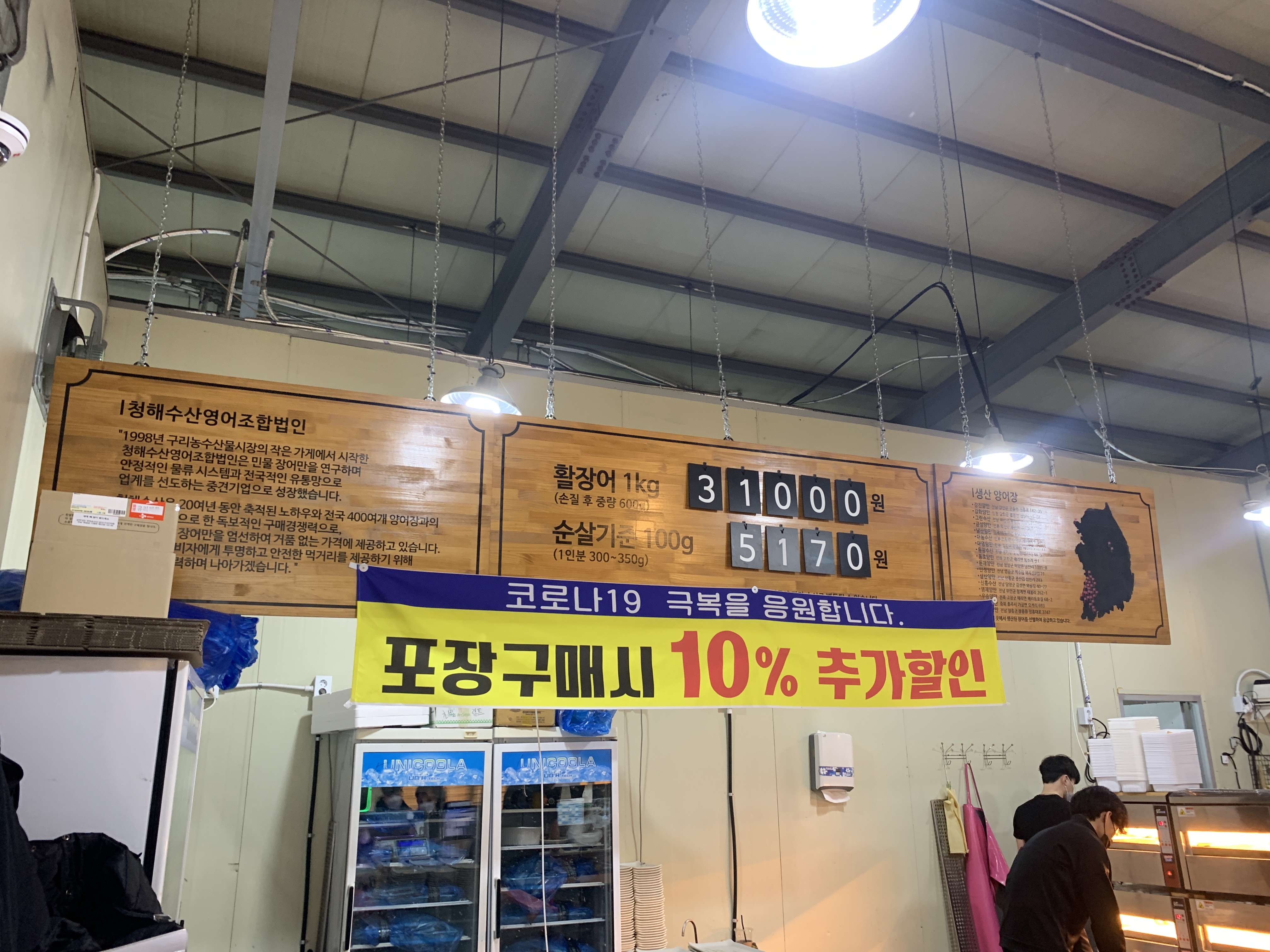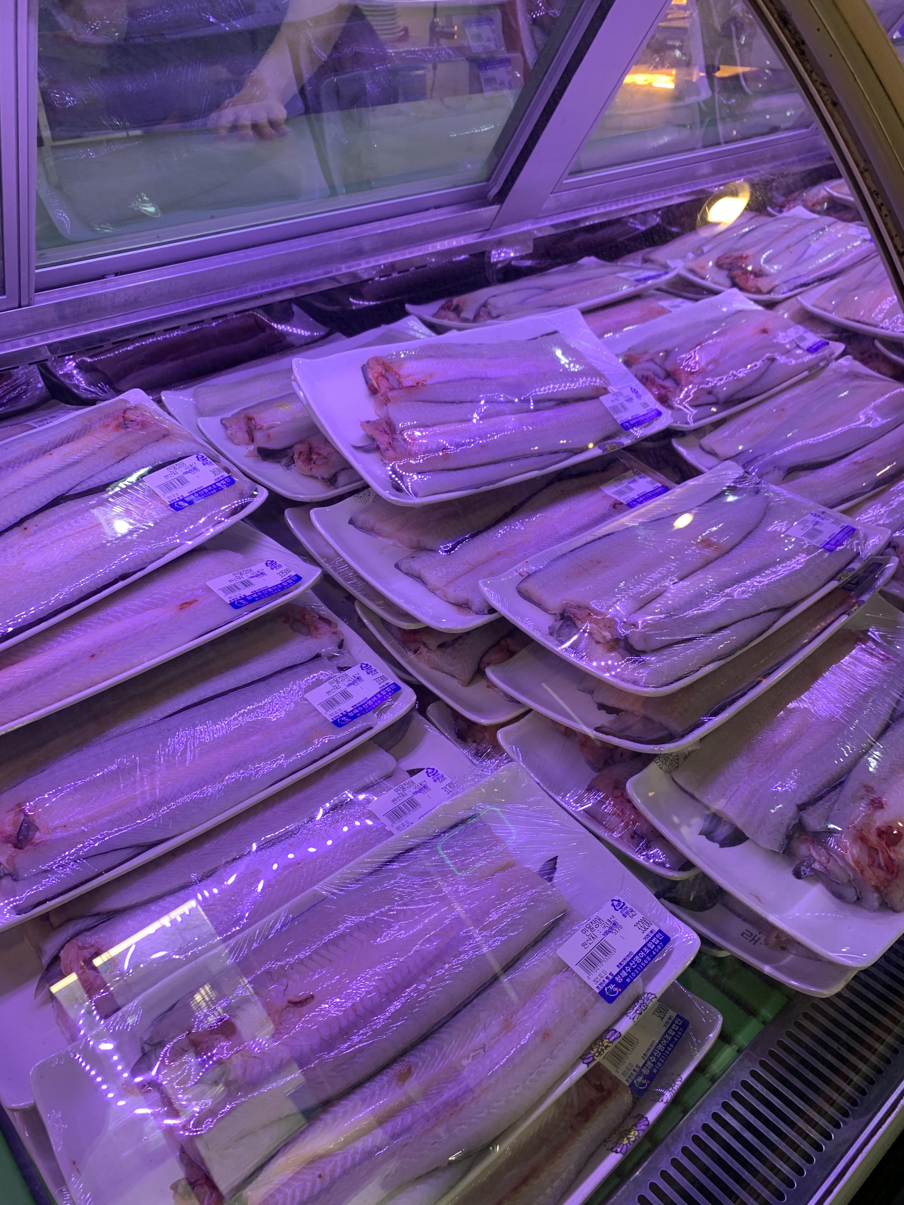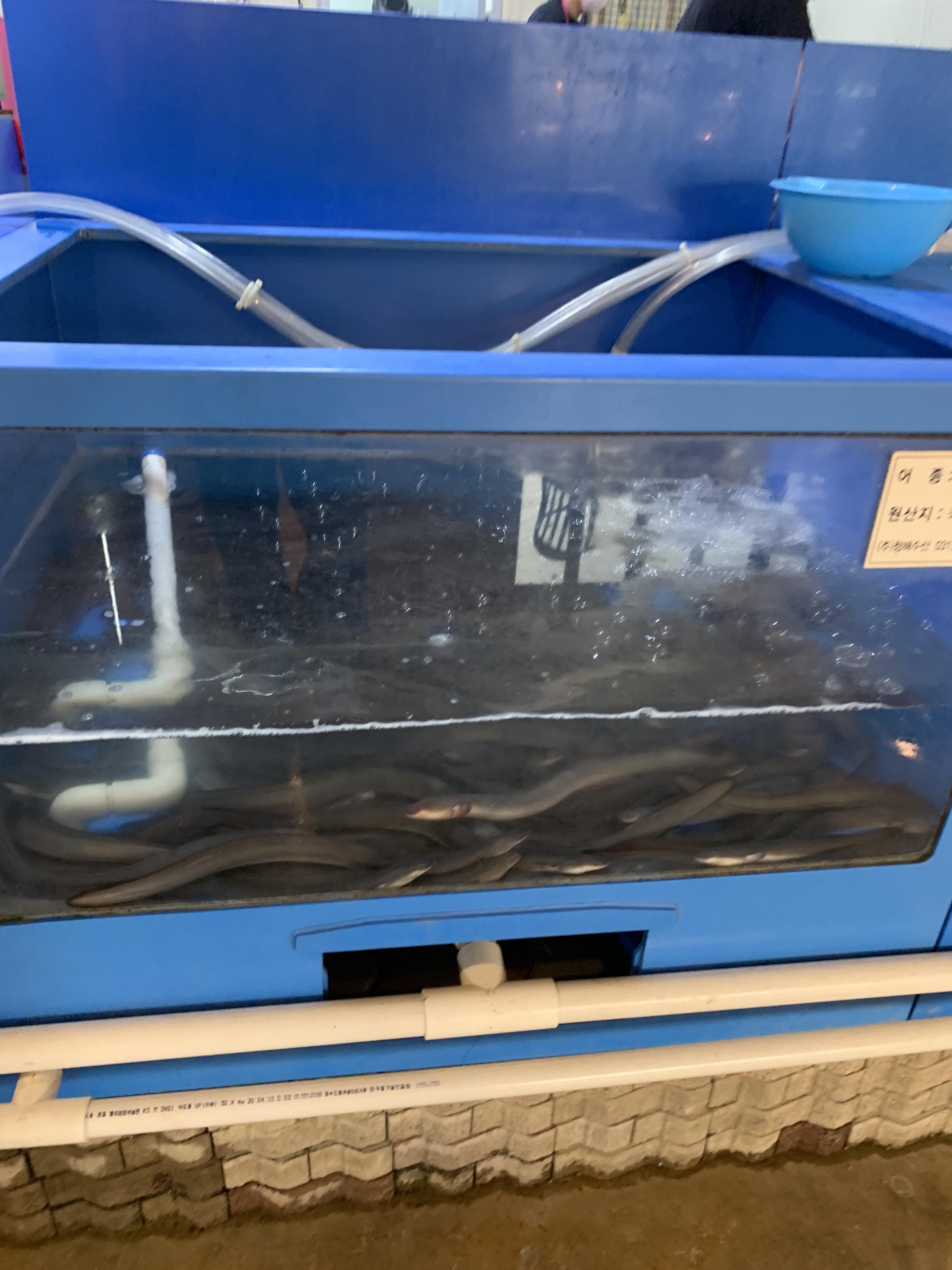 이게 수산판매대에서 판매하는 장어.. 그램별로 장어를 진열해놓고 가져와서 계산하라는 방식으로 진행되는데요!! 정말 신기한게 넌무 장어가 많아서 이게 회전이 빨리 될까/?? 싶은데 바로바로 회전이 되어서 다팔릭 바뀌고... 너무 신기했습니다...