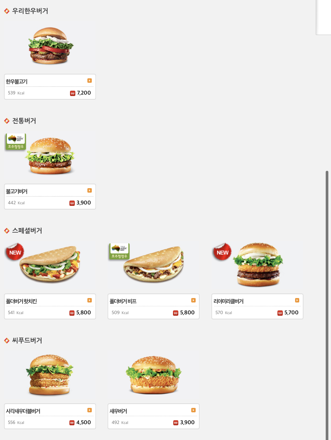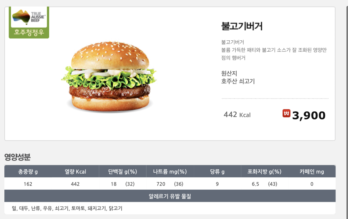 그리고 우리한우버거에는 한우불고기버거, 전통버거에는 불고기버거가 속해있습니다!
