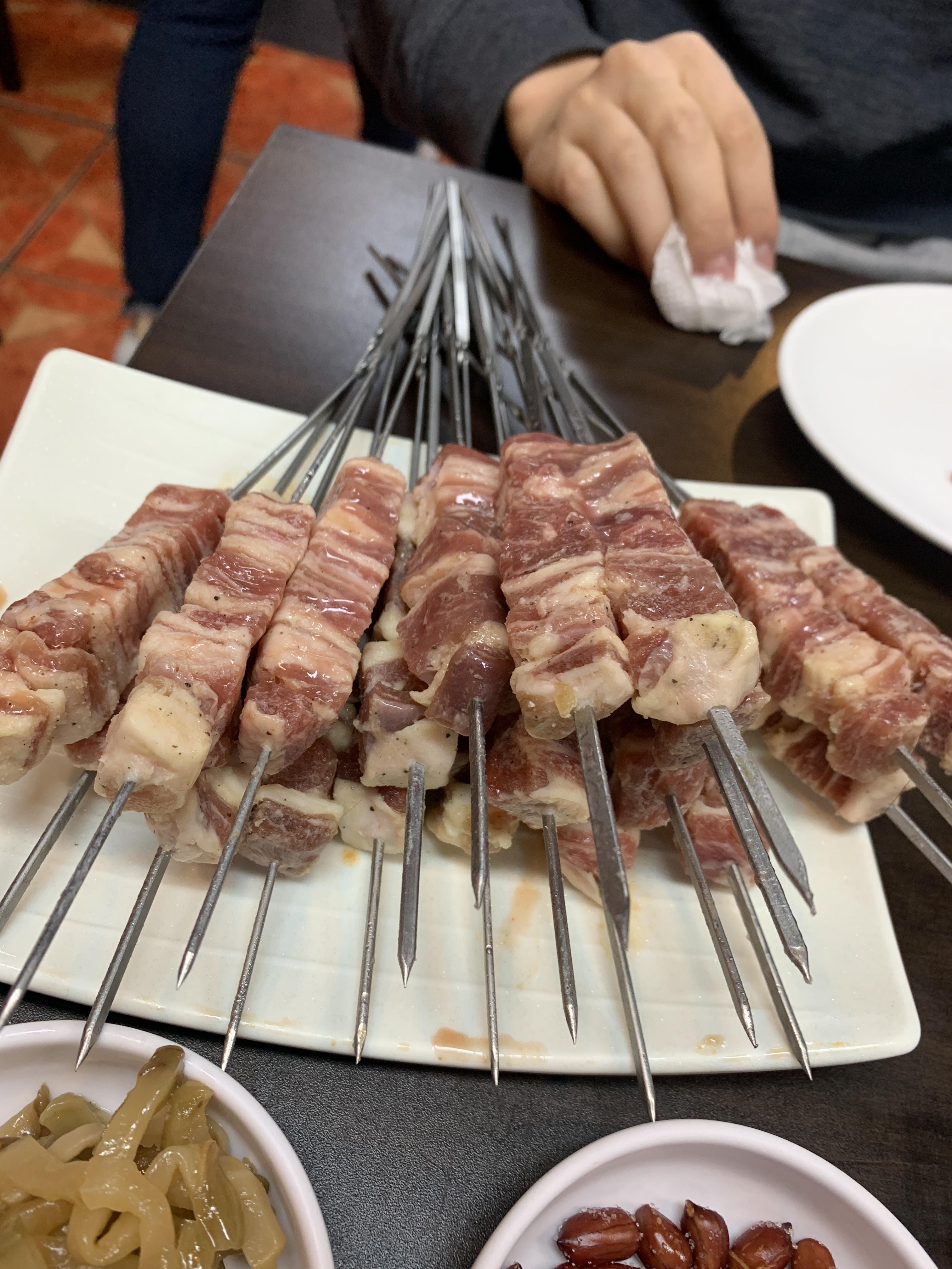 먼저나온 구리 양꼬치 맛집!! 구리 연길양고기의 양꼬치입니다!! 양꼬치는 양념이 된 양고기인데 나름 맛있더라고욯ㅎ ㅎ근데 제 입맛에는 양삼겹이 더 맛있었어요 ㅎㅎㅎ 양꼬치 10개에 만원이고 !! 양삼겹은 10개에 12000입니다!! 저렴한 가격같아요 다른 집들에 비하면 ㅎㅎ