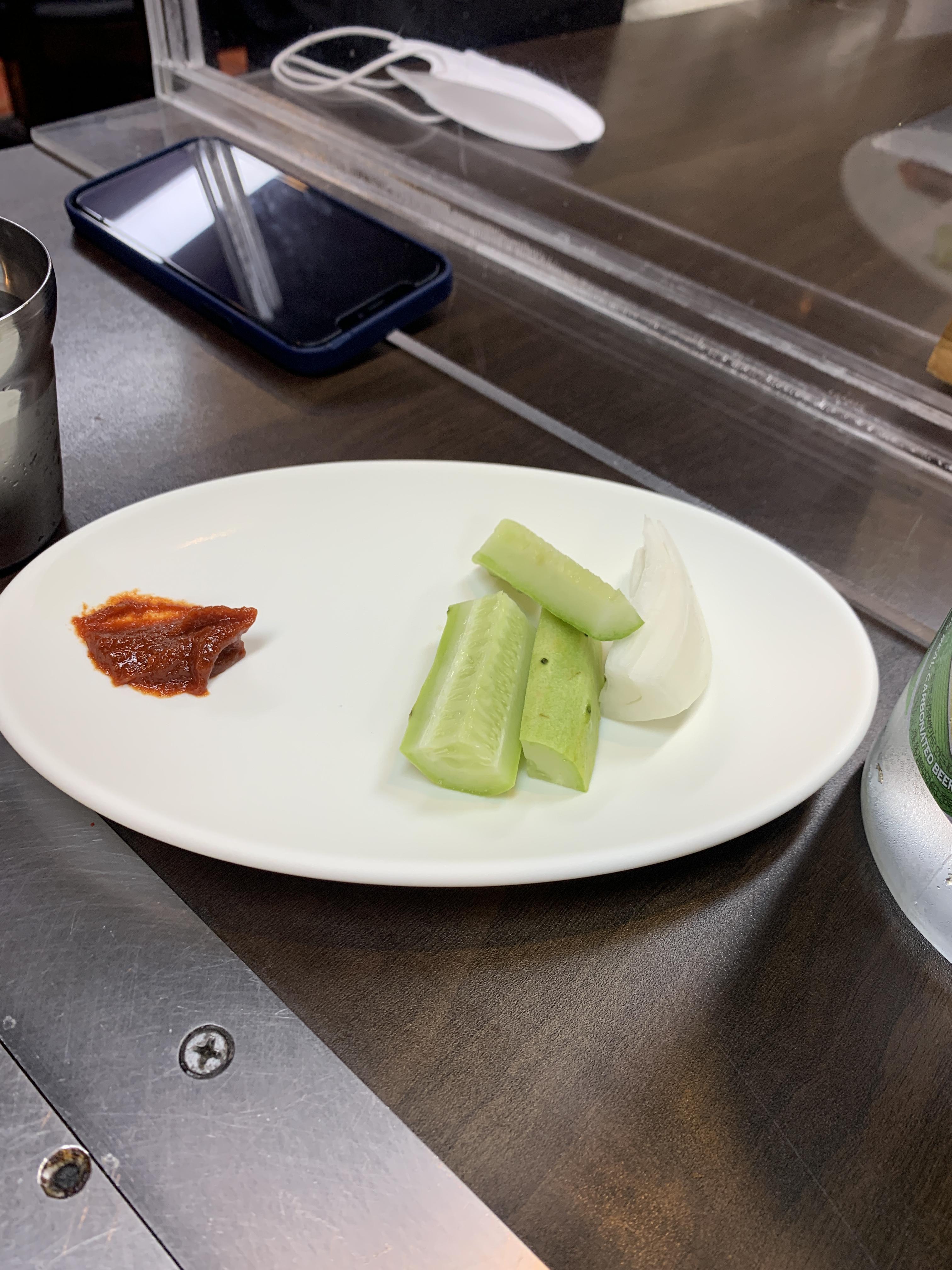 기보난주? 반찬으로 나오는 오이와 양파 ㅎㅎ 저는 양삼겹과 양고치를 많이먹어야하기에 손도 대지 않았답니다 ㅎㅎ~!!!