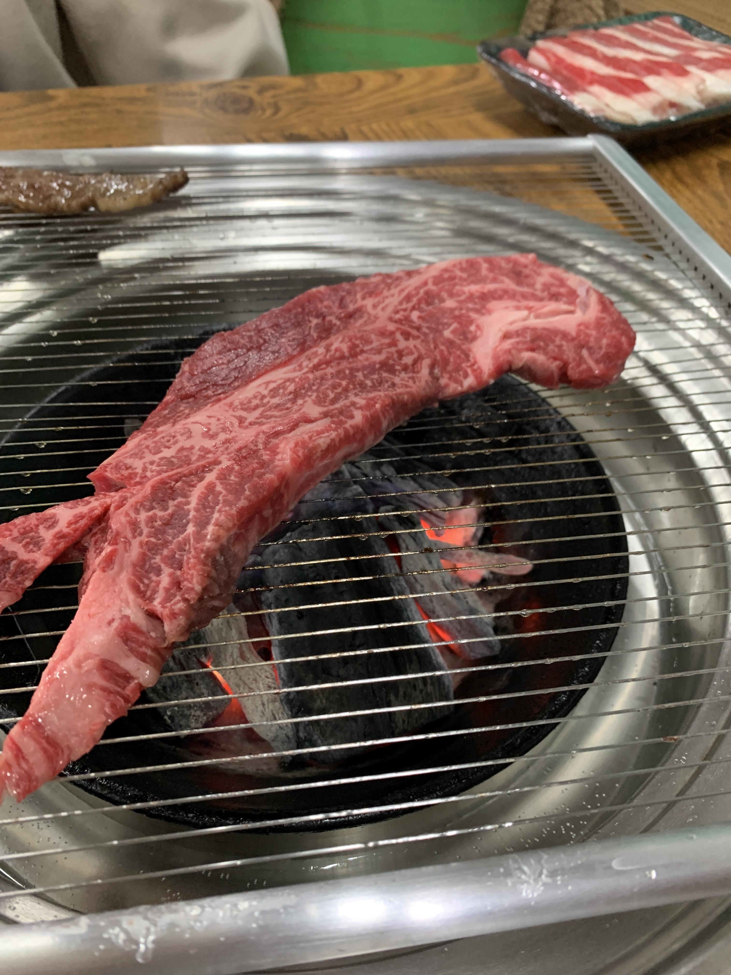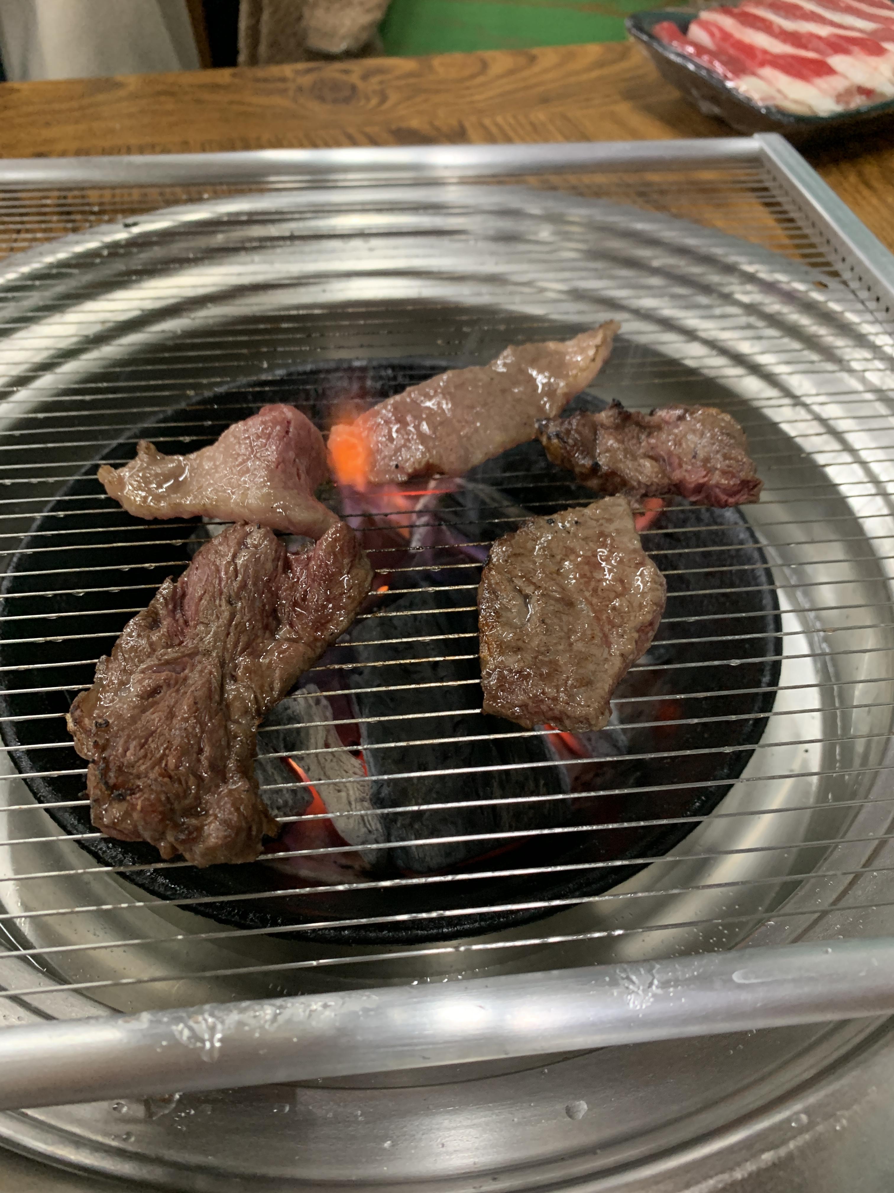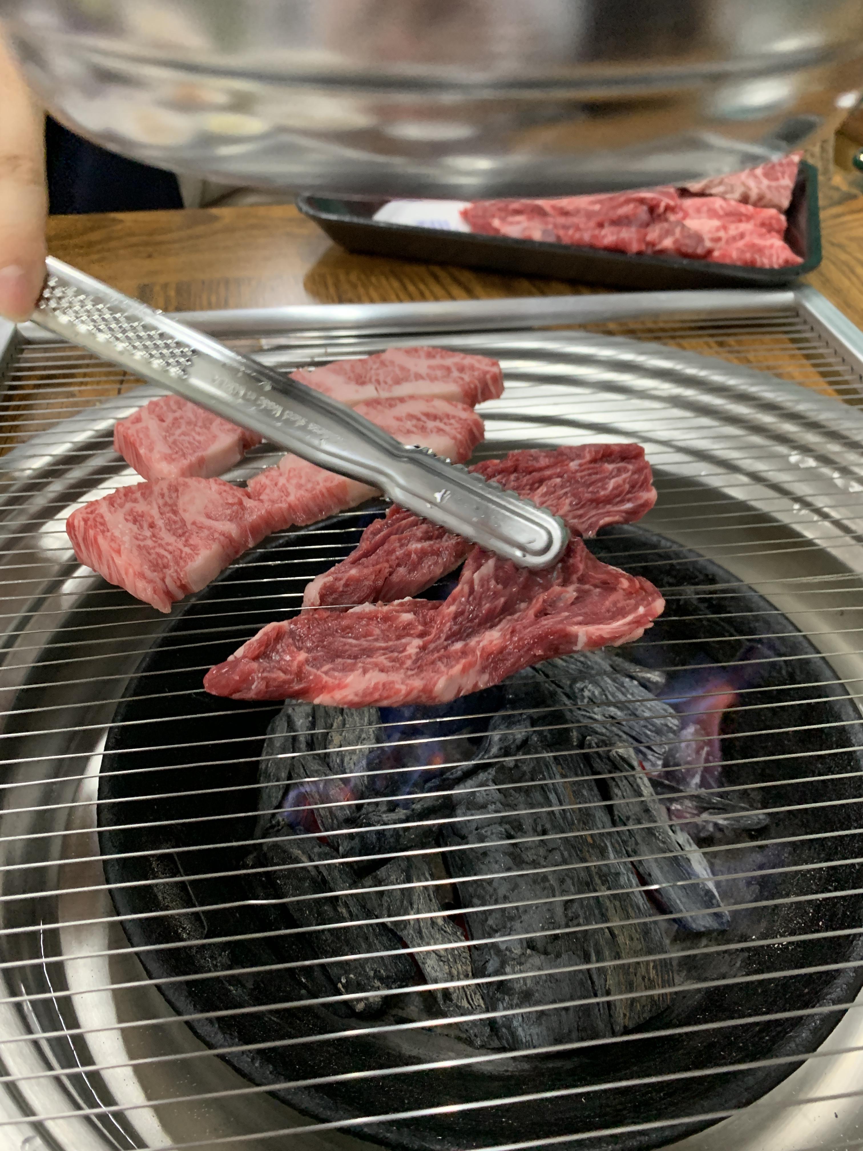 판에서 구울지 숯불에서 구울지 선택하라고 했는데 저희는 숯불구이를 선택해서 마장동 축산시장에서 한우를 구웠습니다 ㅎㅎ