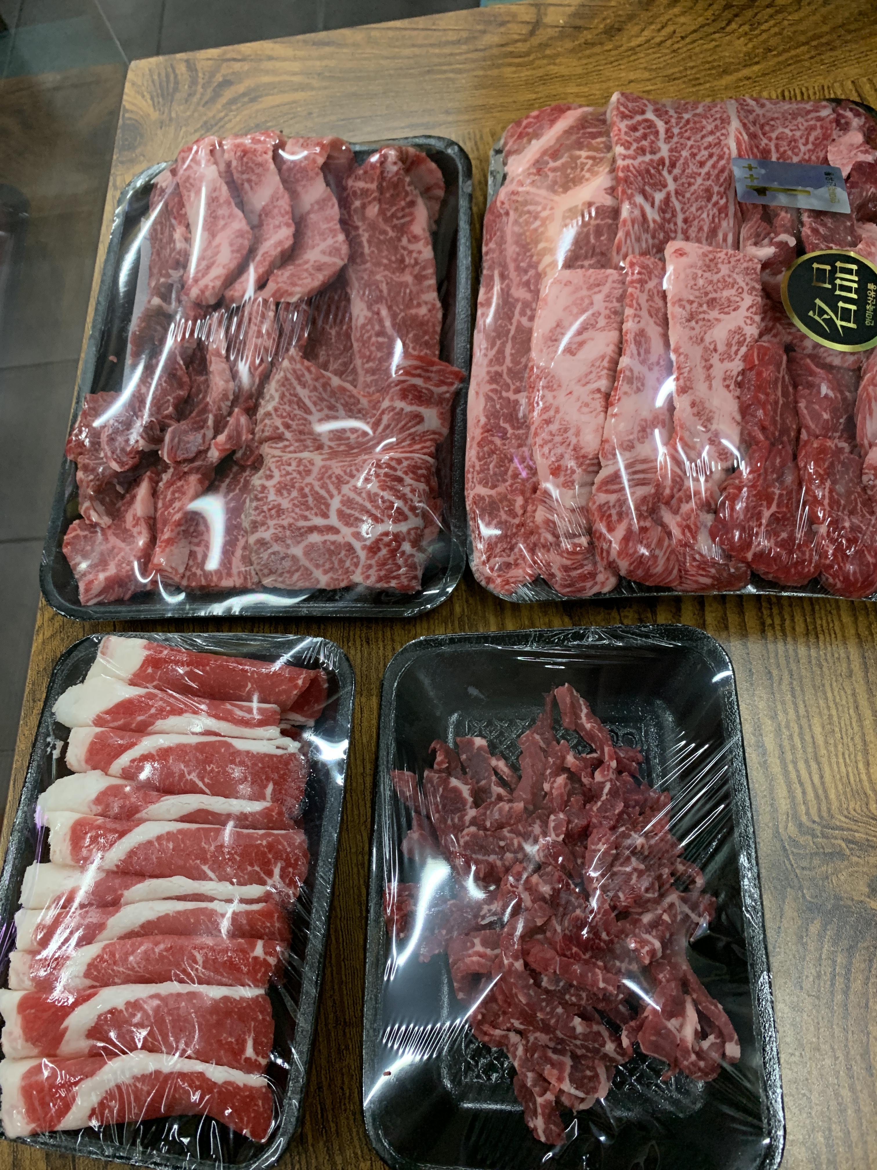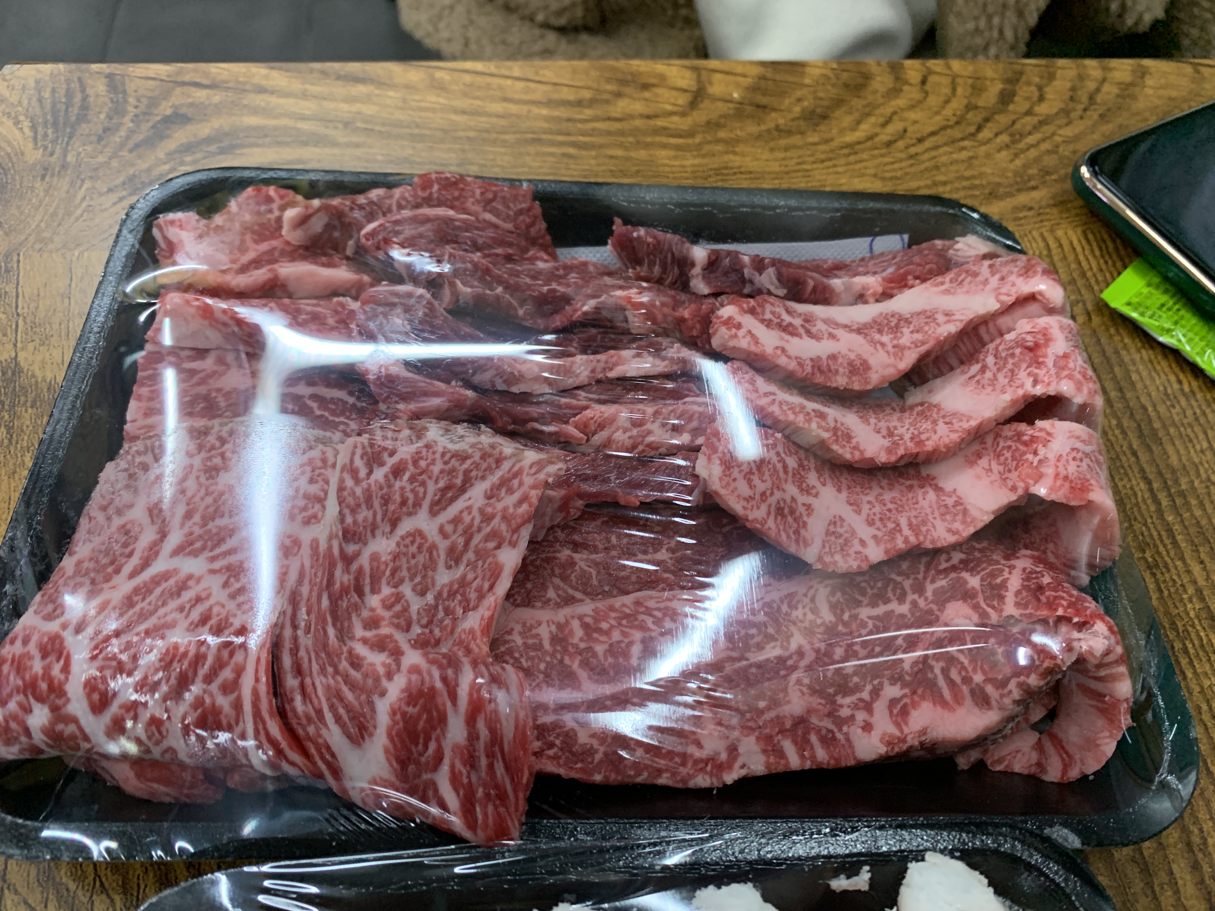 이게 바로 저희가 구매한 고기에요!! 한 1.2KG를 16만원에 구매했어요 ㅎㅎ 꽃등심, 꽃살, 살치, 제비추리 등이 들어있었고 2명에서 500G정도 먹고 나머지는 집에 가져갔어요 ㅎㅎㅎ 두분이서 먹을 것이면 6만원?? 이면 가맛있게먹을 것같아요 ㅎㅎ 하지만 여기에 상차림비 +6000원 씩은 추가해야합니다 ㅎㅎ