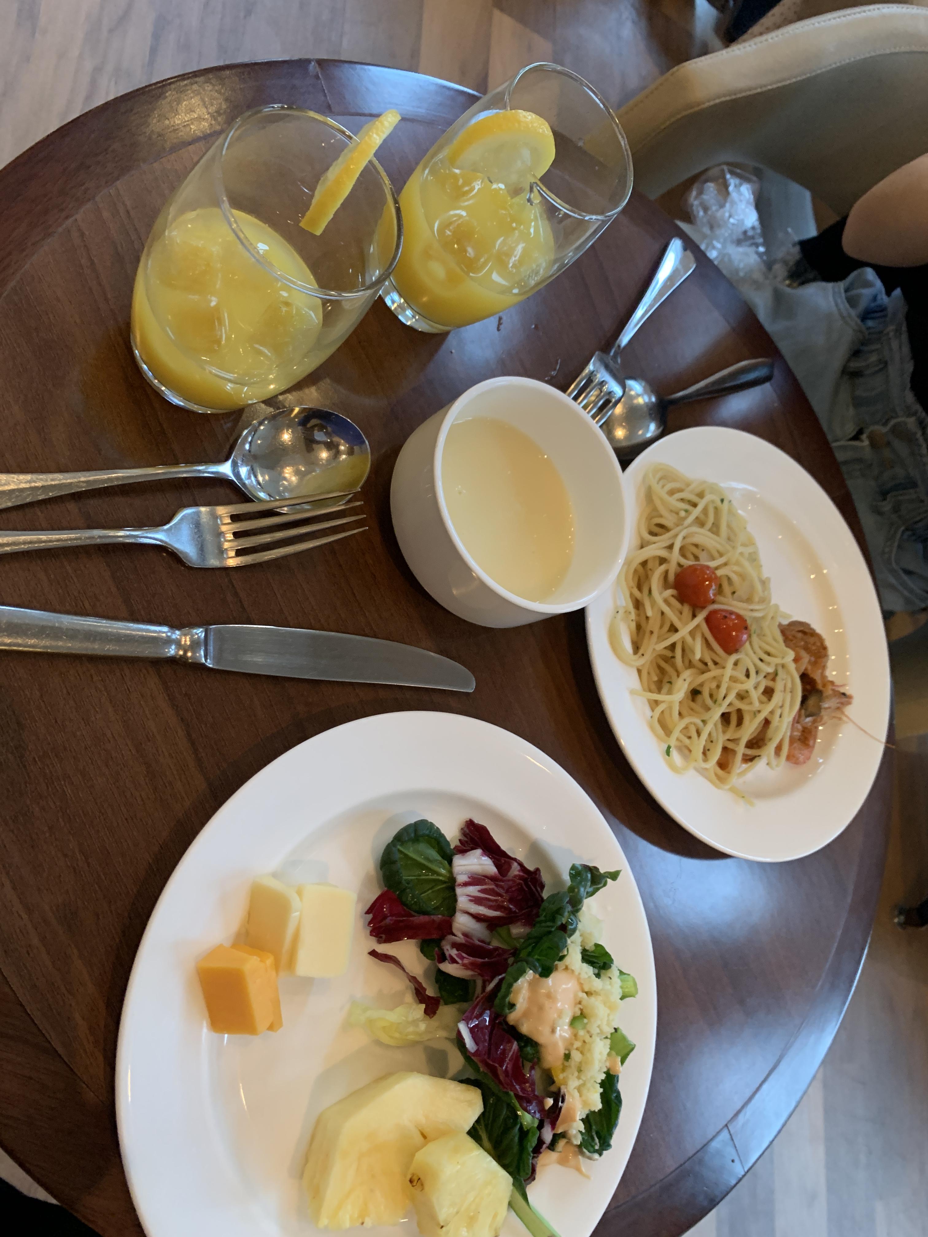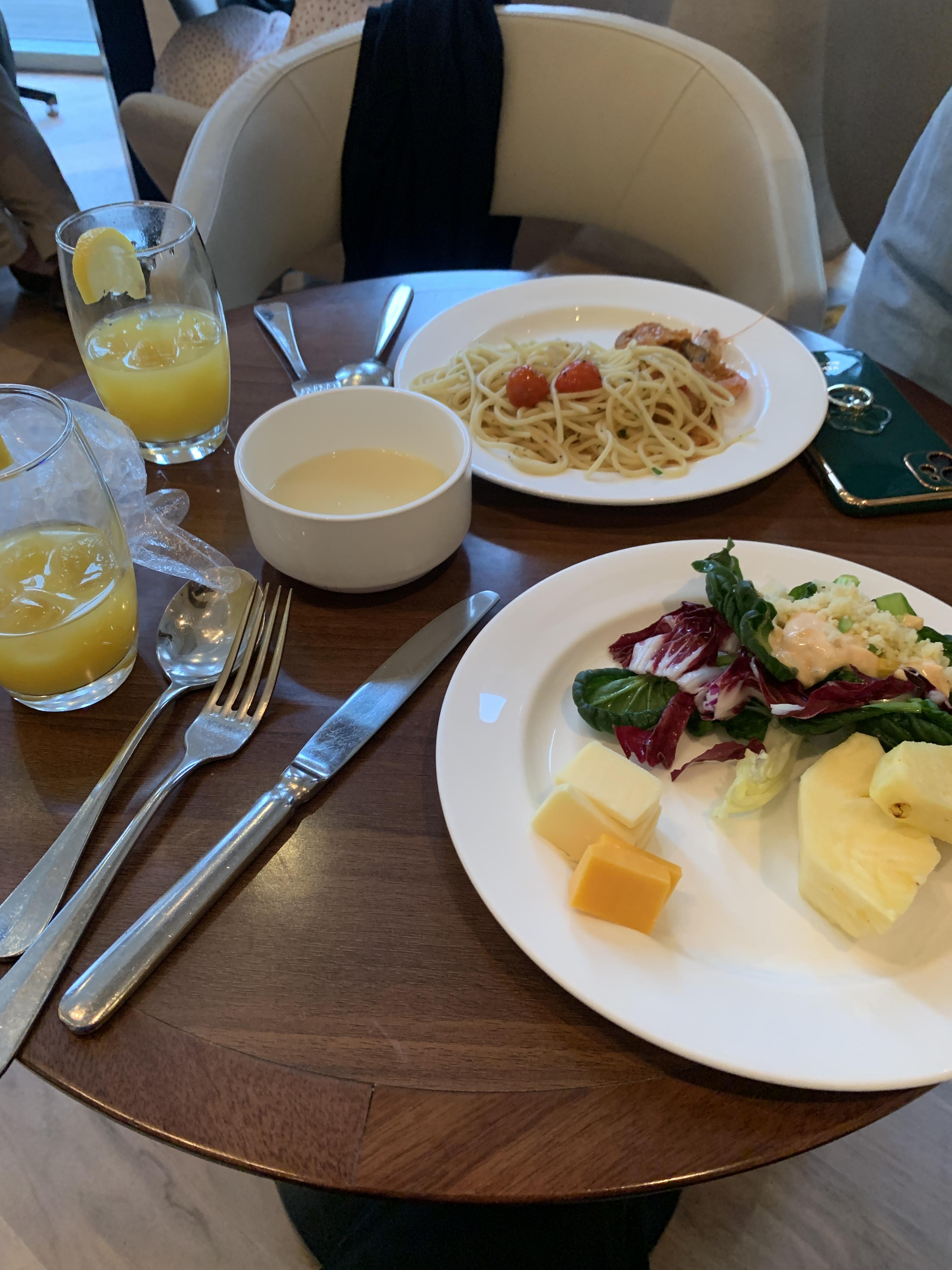 파스타, 치즈, 샐러드, 과일 등이 있습니다 ㅎㅎ 꽤나 맛있더라고요 ㅎㅎ