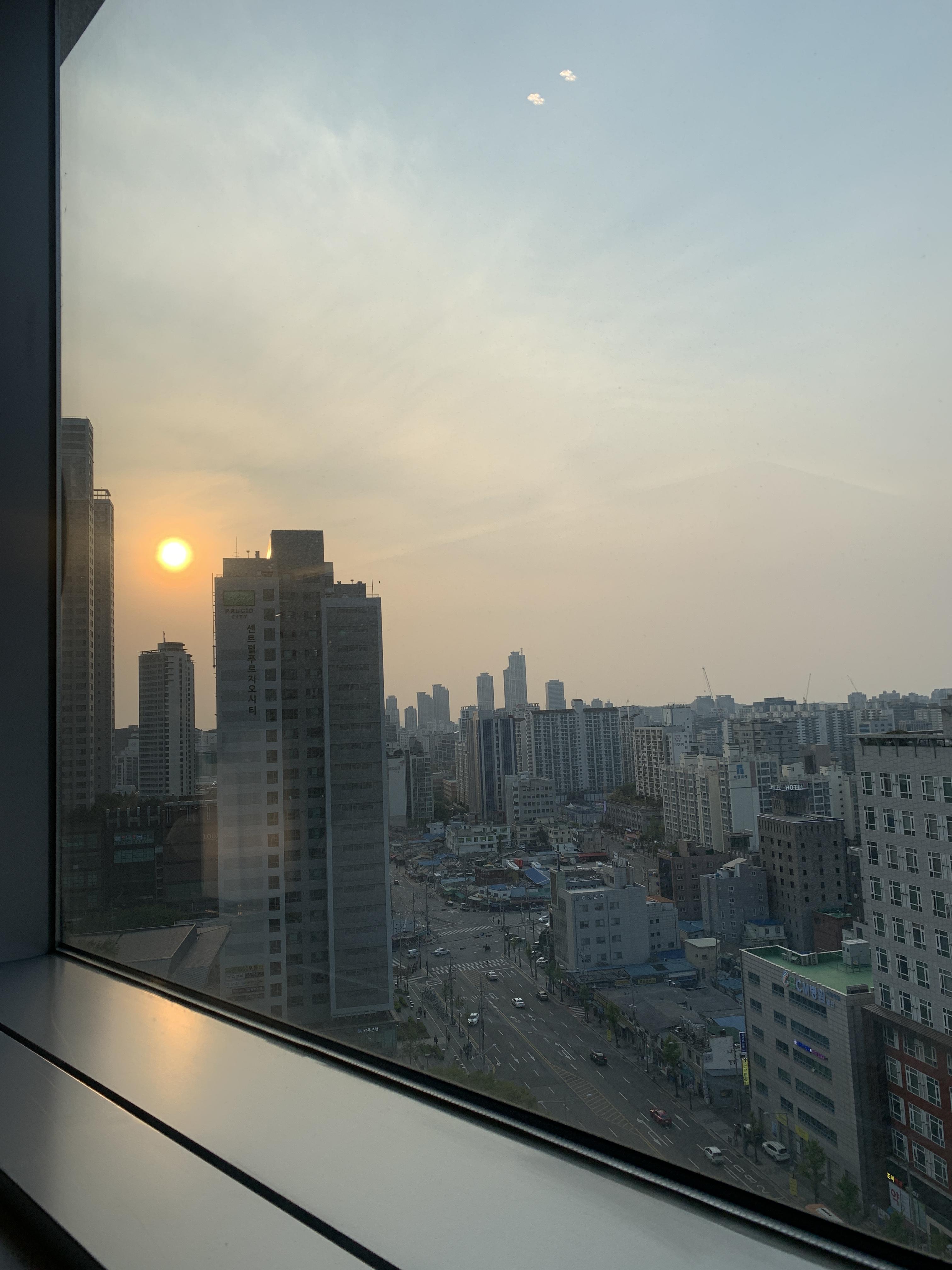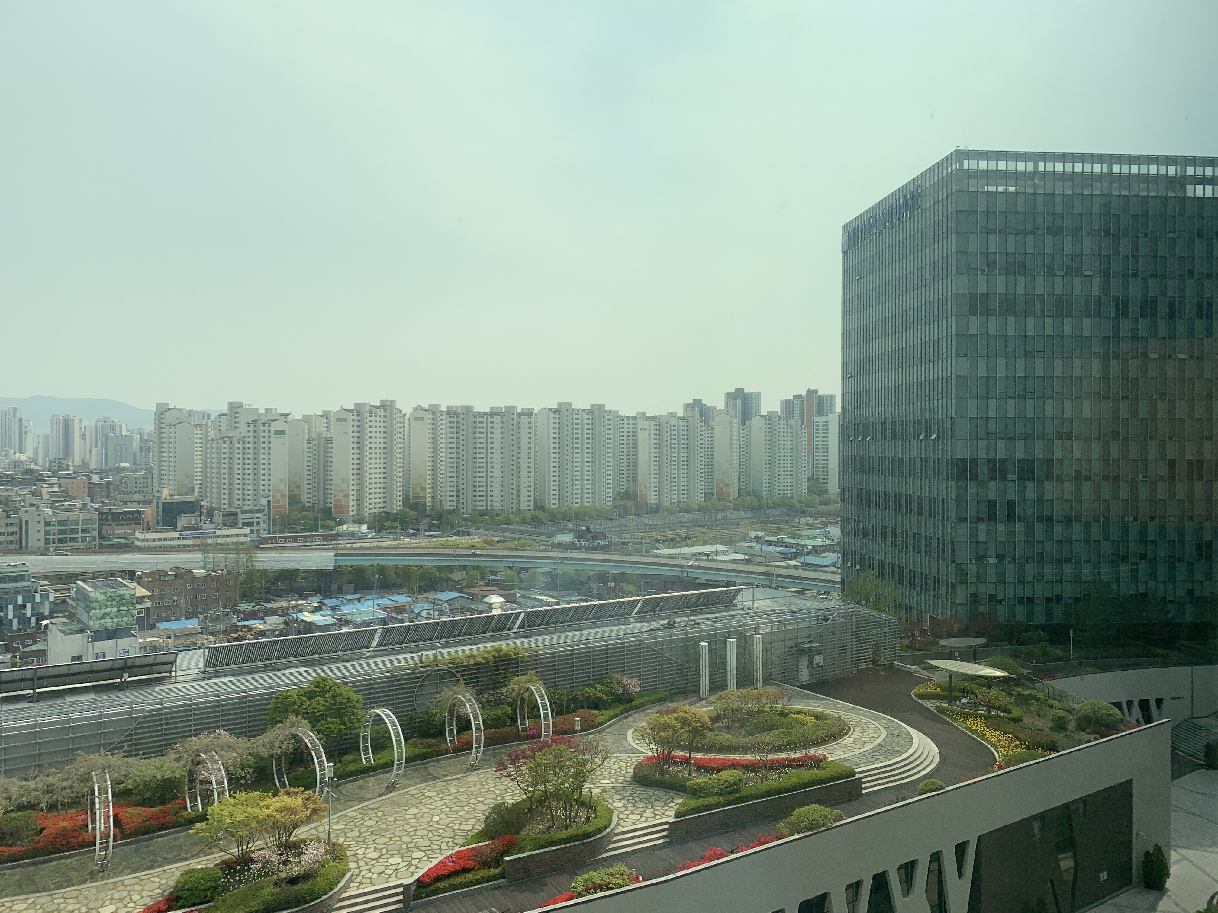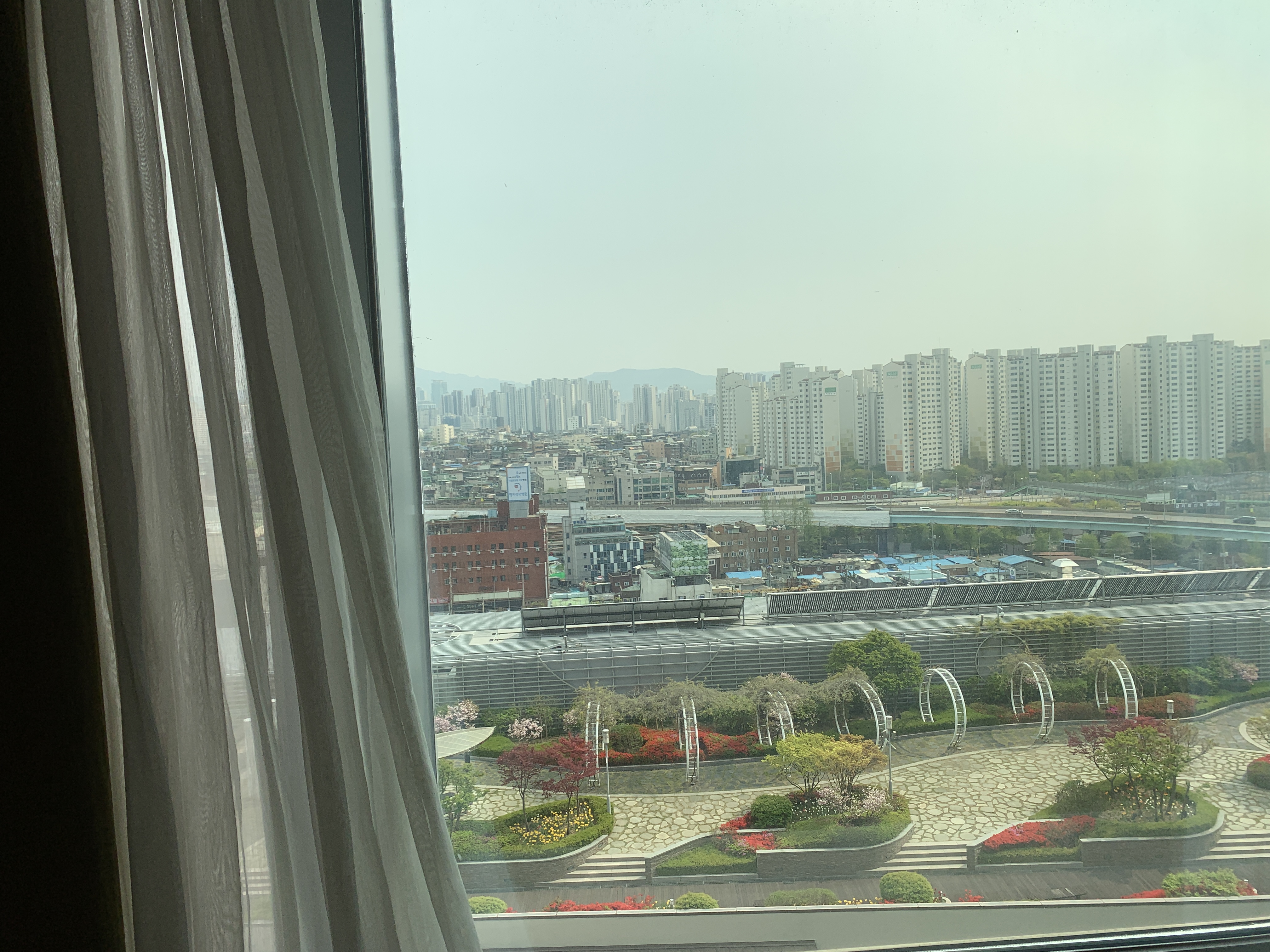 이게 저희가 받은 방의 VIEW입니다 ㅎㅎ 지하철과 큰 건물뷰.. ㅎㅎ 뻥 뚤려있는 기분이니 좋더라고요 ㅎㅎㅎ