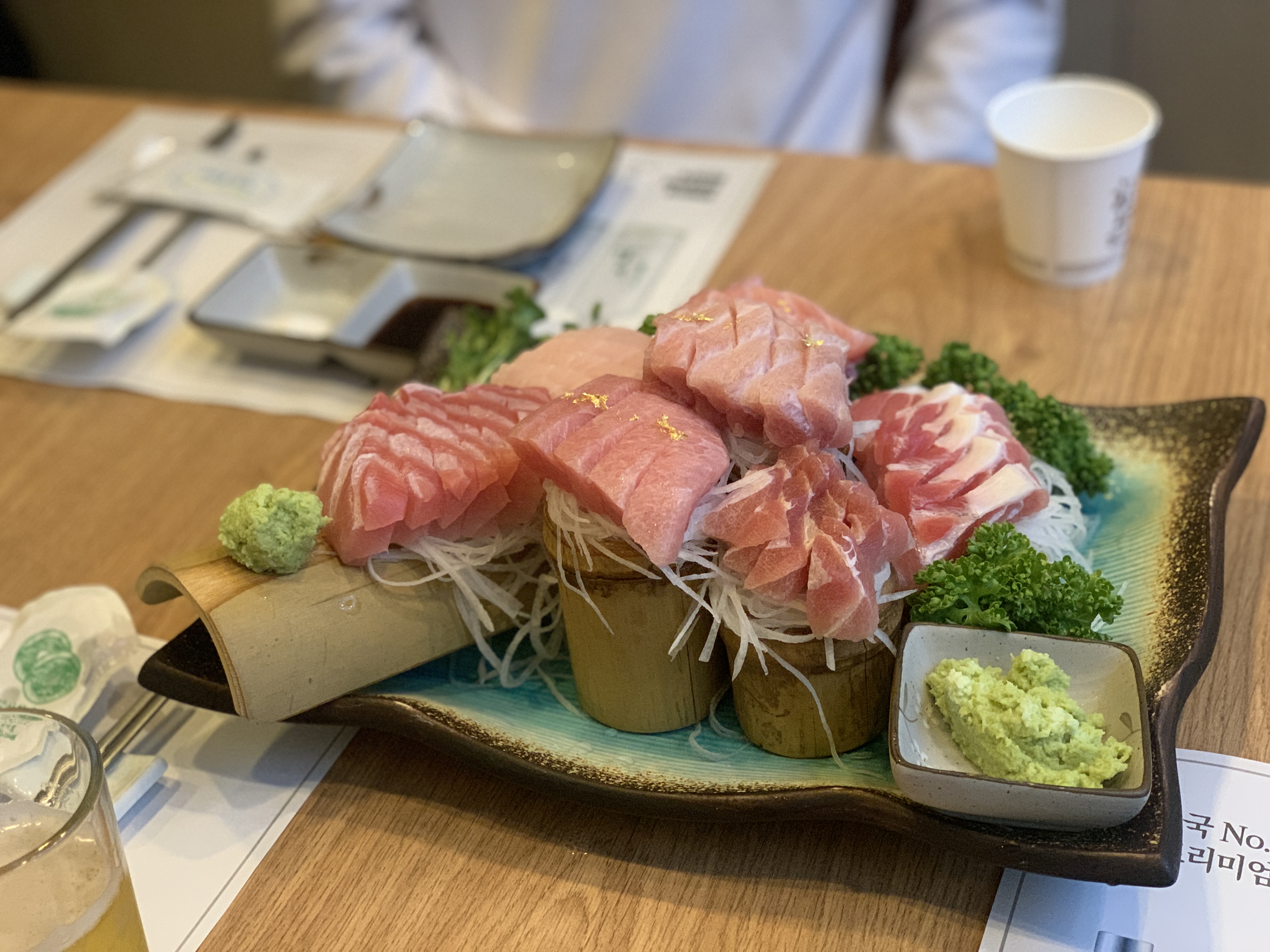 그리고 와사비도 생와사비를 잔뜩주시니까 이게 너무너무 맛있더라고요!! 금가루 뿌려진 몇부분은 비싼거고 사장님께서 와서 설명을 해주시는데 기억이 안나서 부위를 하나하나 설명 못드리겠어요 ㅎㅎ....