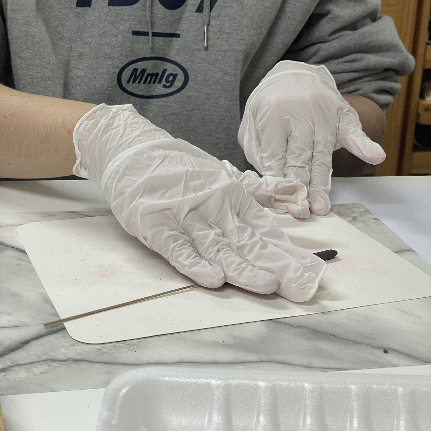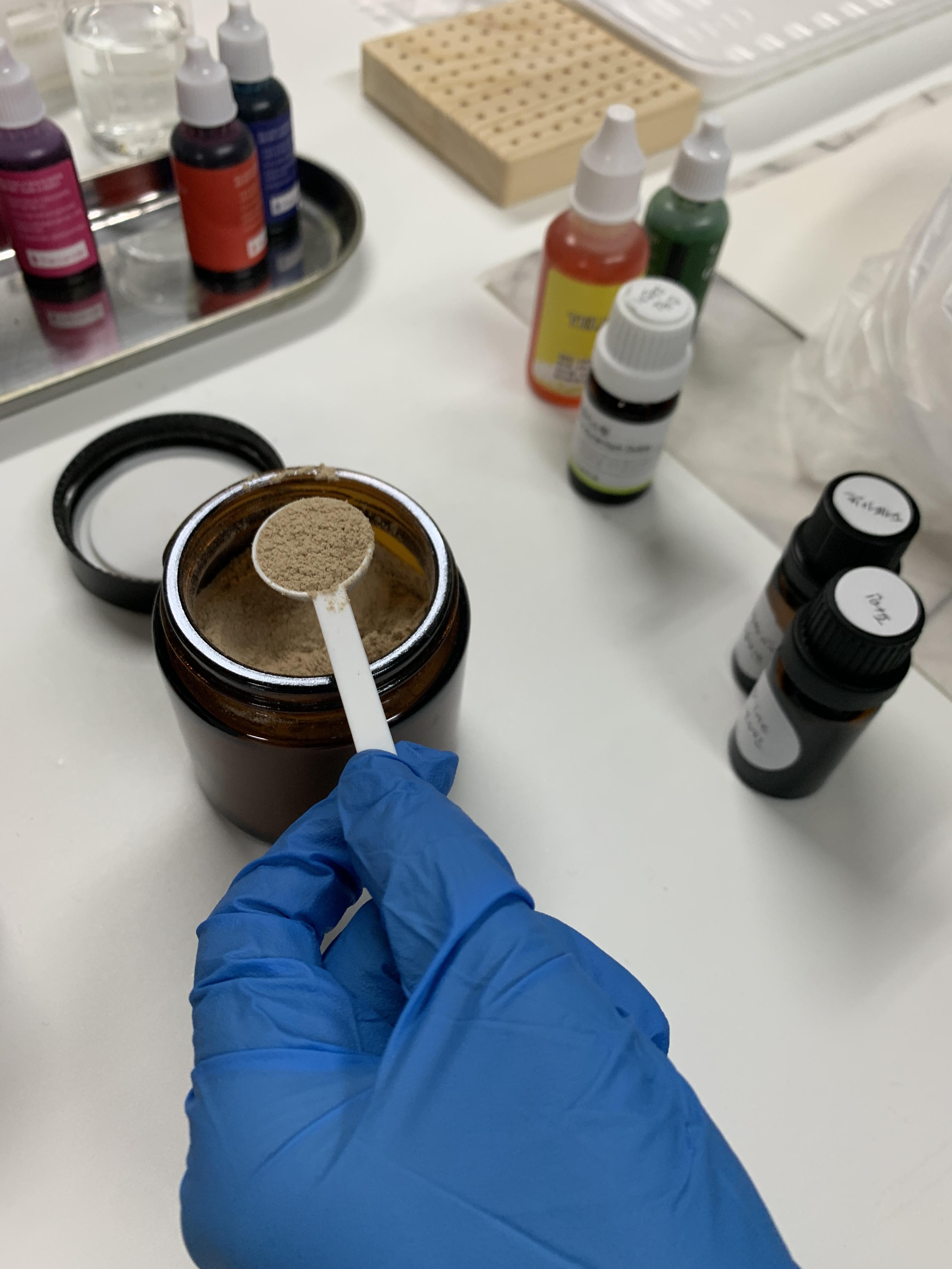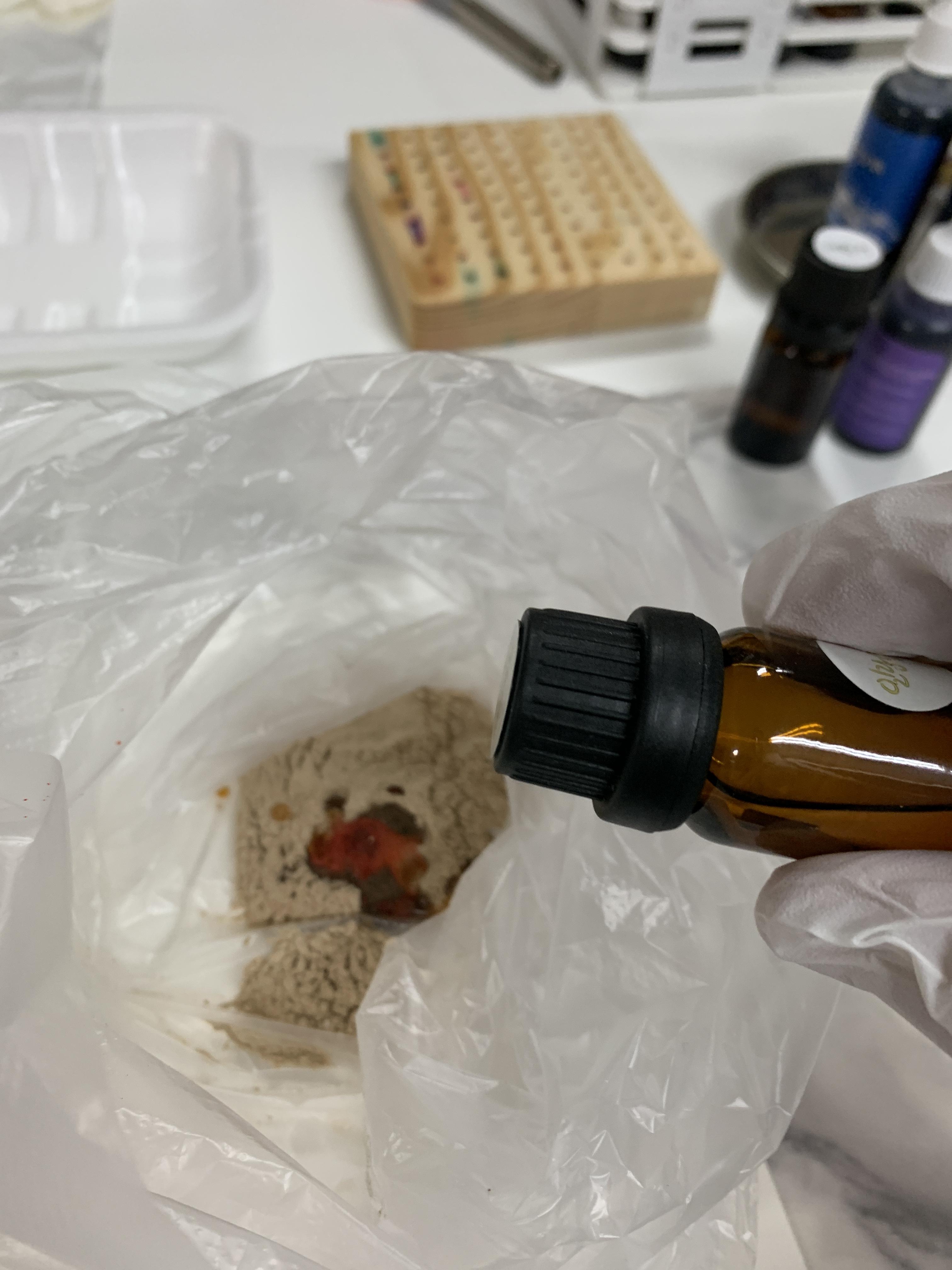 인센스 원데이 클래스 리풀리움에서 화이트 베이스에 이렇게 색을 넣는 장면이에요!! 주황색으로 향을 하나 만들어보려고요~!