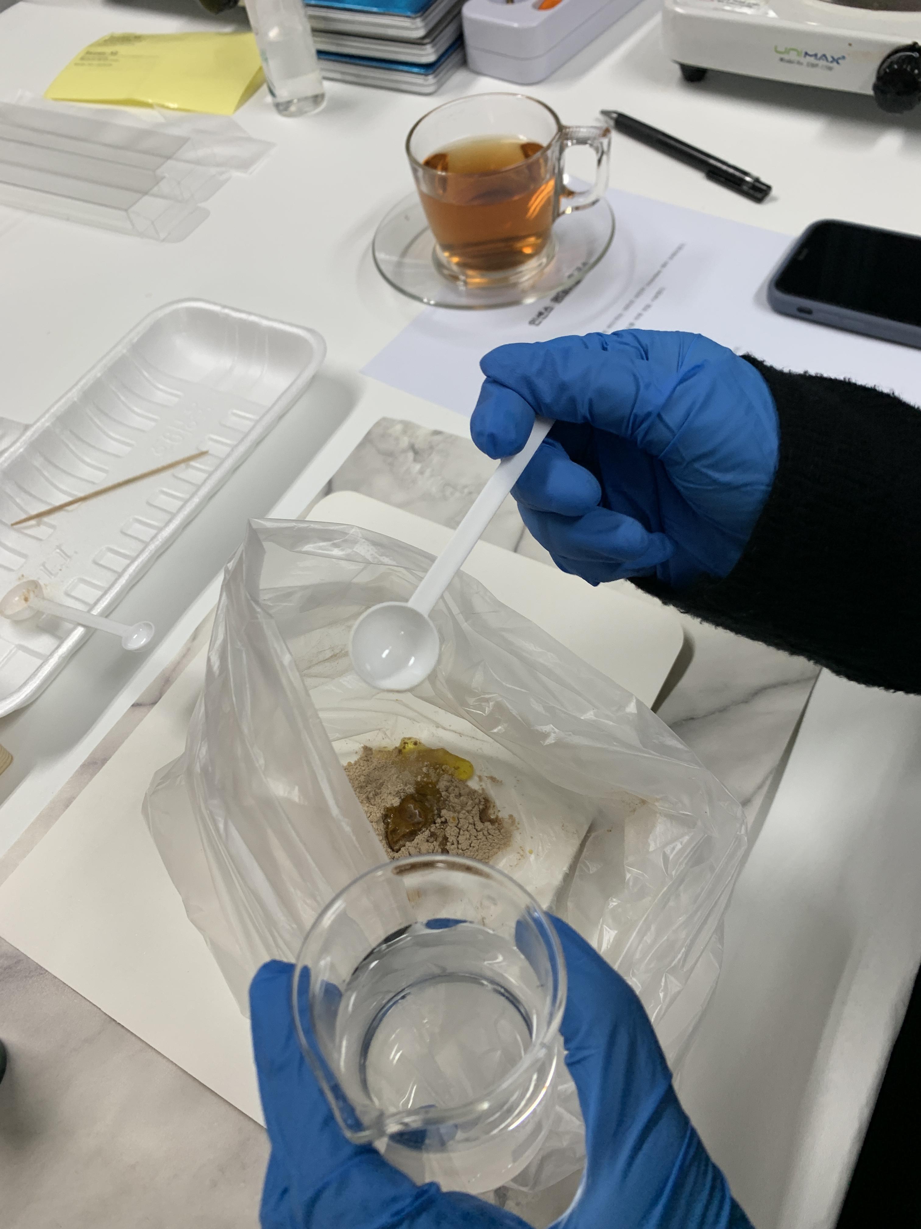 이러한 비닐에 베이스와 물, 향을 넣기 시작했어요!!