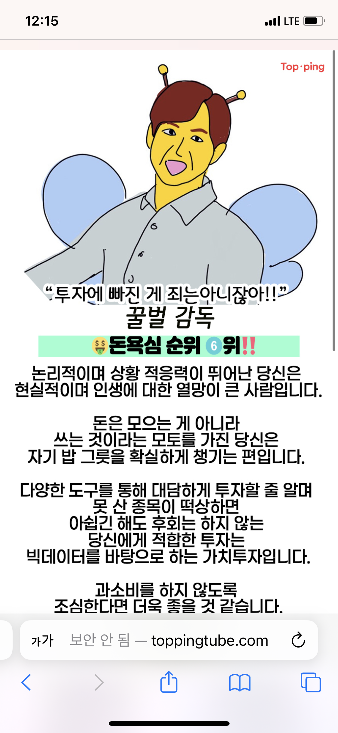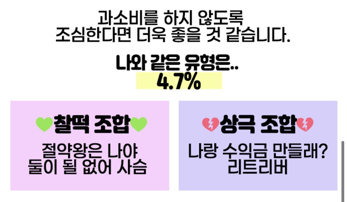 돈 욕심 테스트에서 찰떡조합과 상극 조합도 나와서.... 한번 친구와 재밌게 해보세요