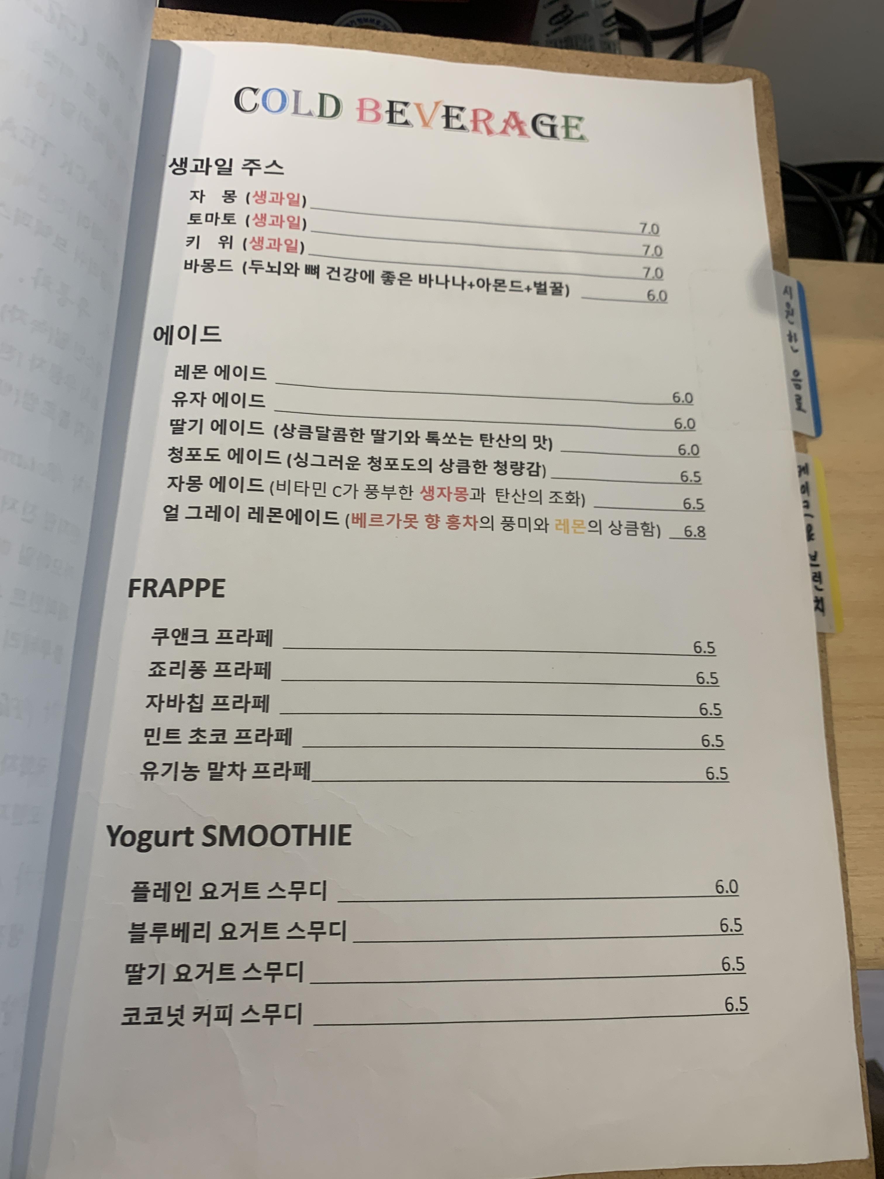 여기는 생과일 주스와 각종 케이크 등을 판매하고 있습니다 ㅎㅎ