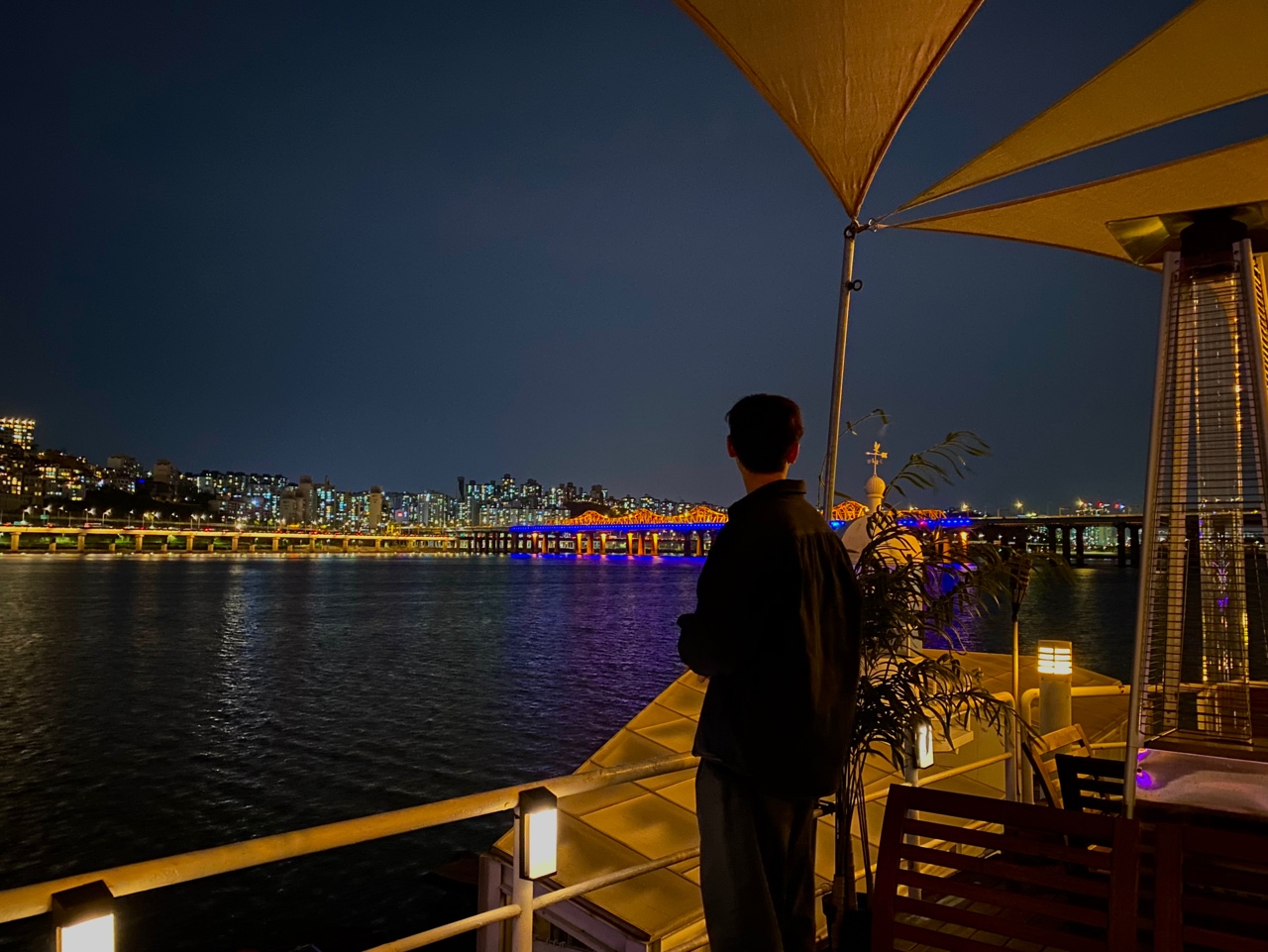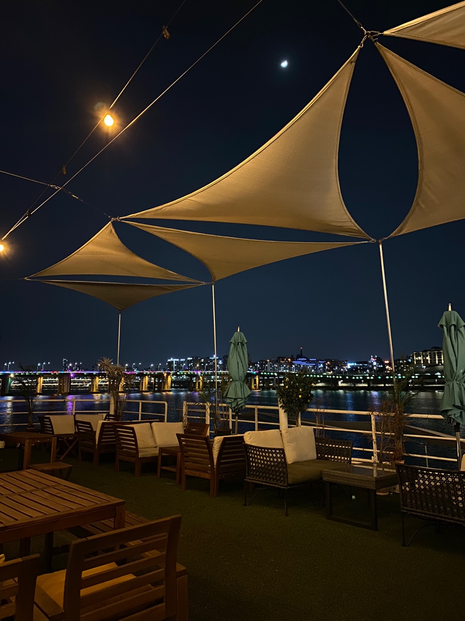 잠원 선상레스토랑 살롱드애일리에서 여기가 테라스 석입니다!! 이 자리는 핫해서 인터넷에서 예약을 하고 가시기를 추천드립니다 ㅎㅎㅎ