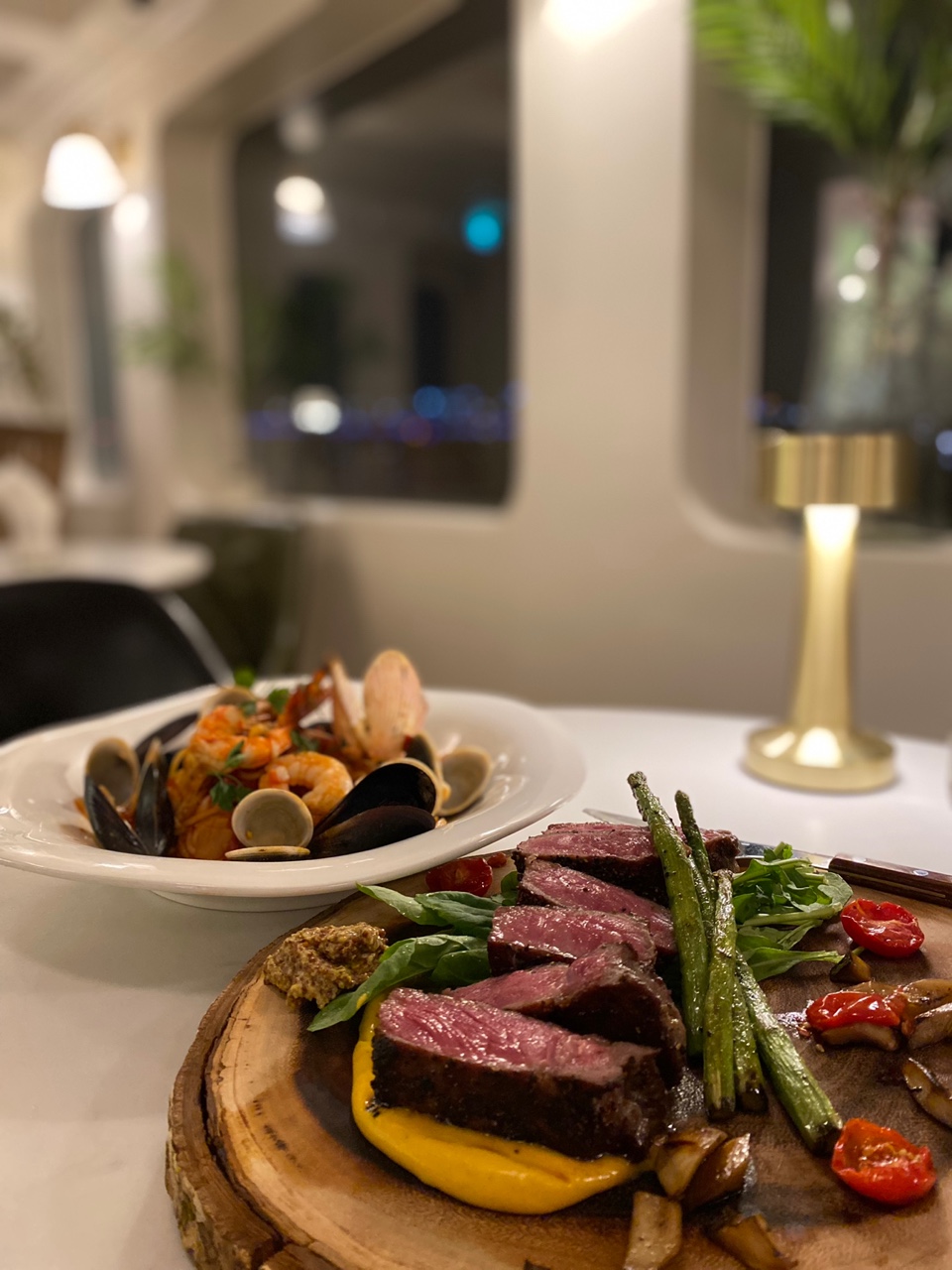 스테이크와 파스타… 진짜 미쳤어요 솔직히 비싸다고 생각했는데 맛은 제 인생에서 가장 맛잇는 스테이크였어요…….