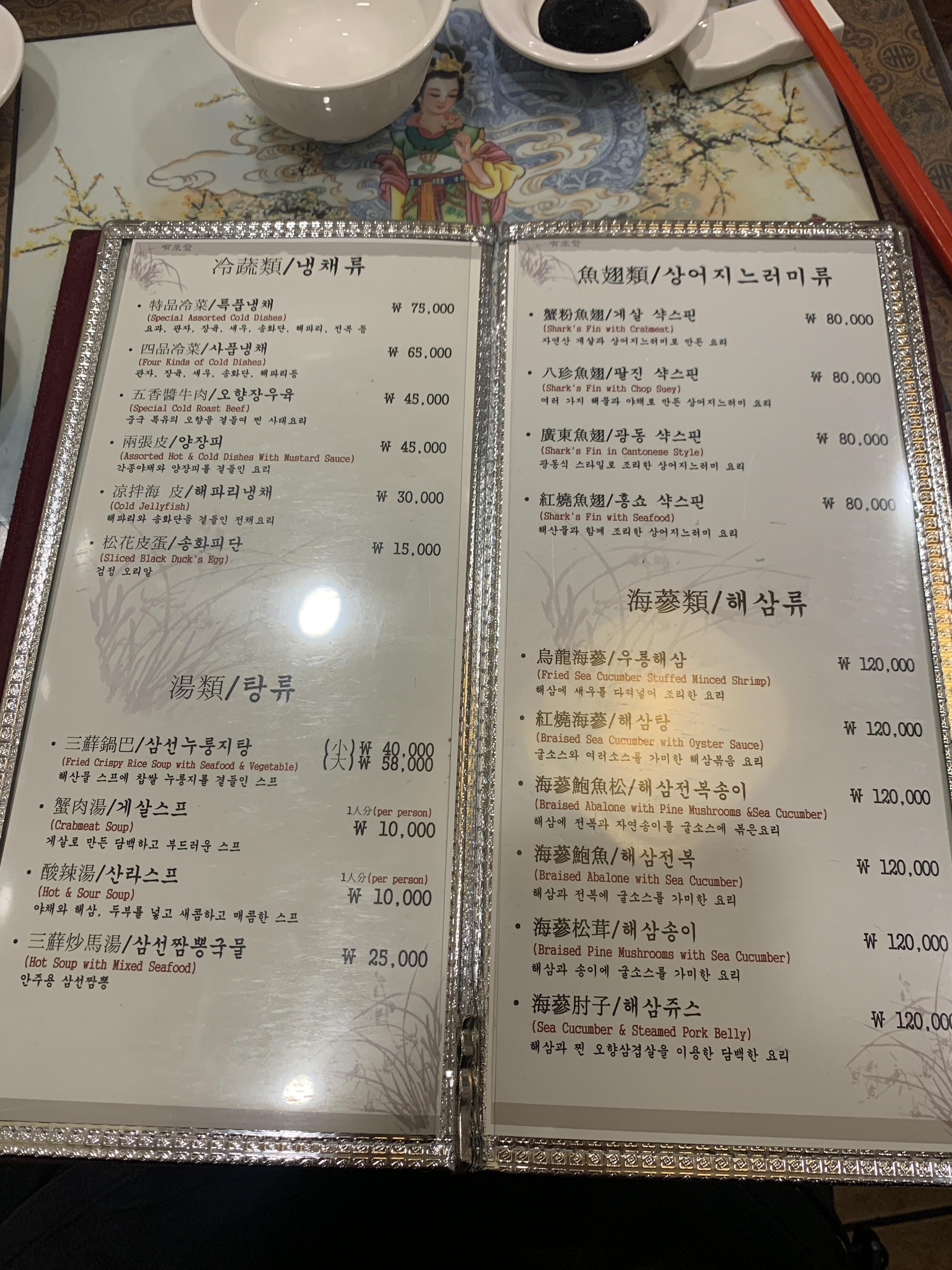 정말 다양한 코스도 있어요 다만 저희가 오늘 먹고 싶은건 구리 맛집 유래등 중국집의 전가복이어서 전가복을 단품으로 시켰습니다 ㅎㅎ