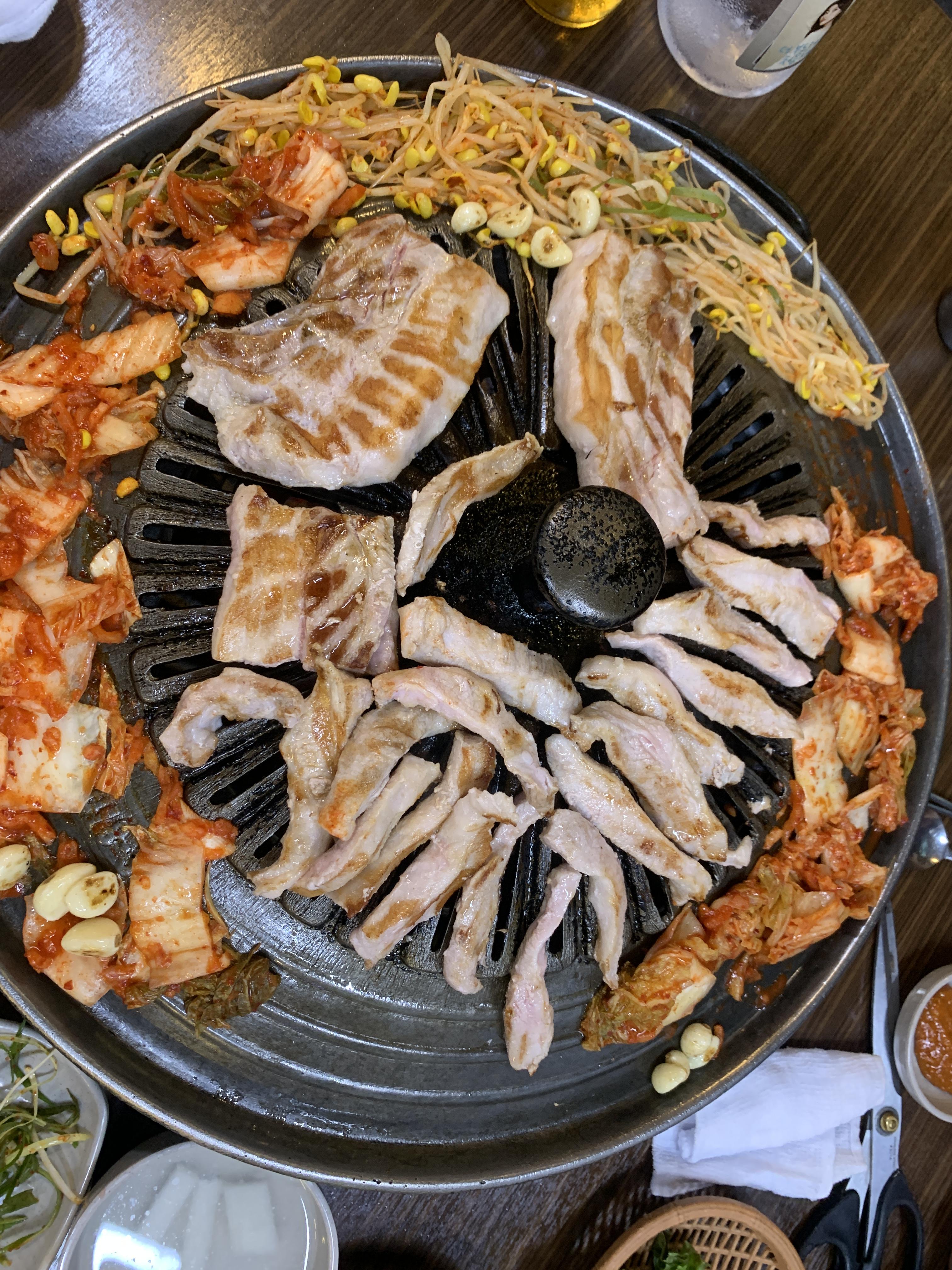 메인 옆으로 김치와 콩나물을 올려주셔요 ㅎㅎ 저희는 마늘도 올려서 구워먹었네요 ㅎㅎ
