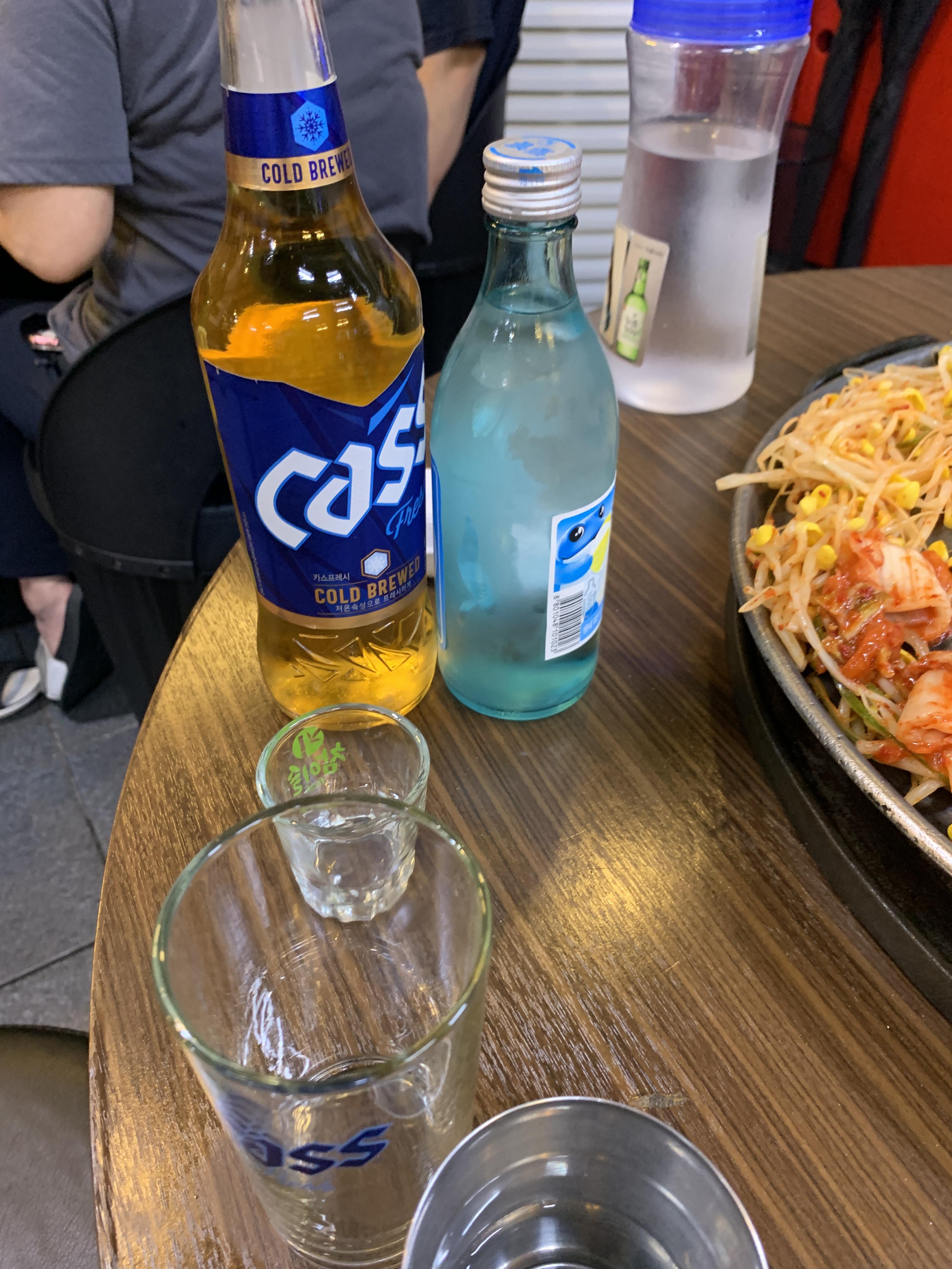 삼겹살에 빠질수 없는 소주와 맥주.... ㅎㅎ 친구는 소주를 먹고 저는 맥주를 먹었어요 ㅎㅎ