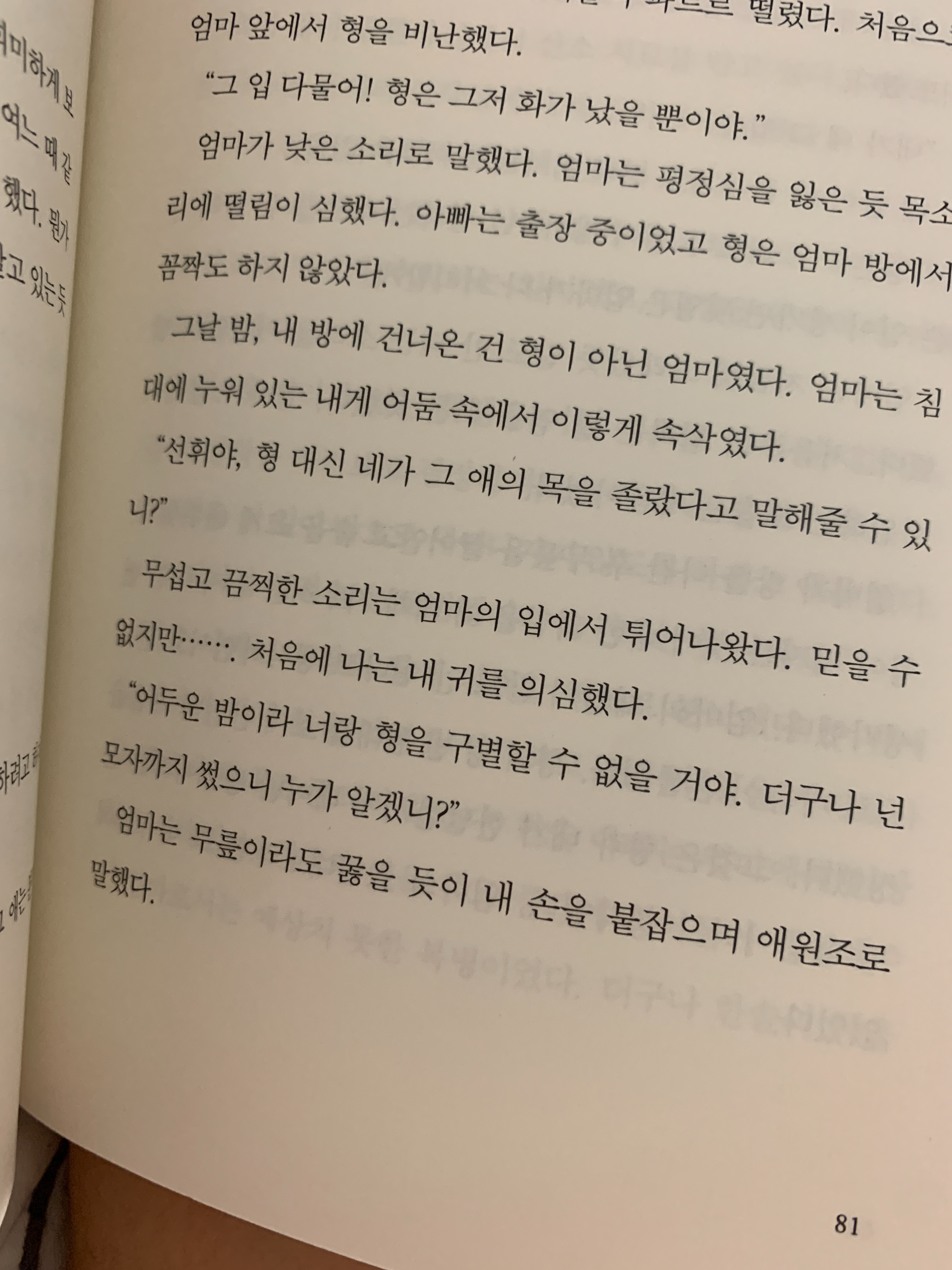 "선휘야, 형 대신 네가 그 애의 목을 졸랐다고 말해줄수 있니?