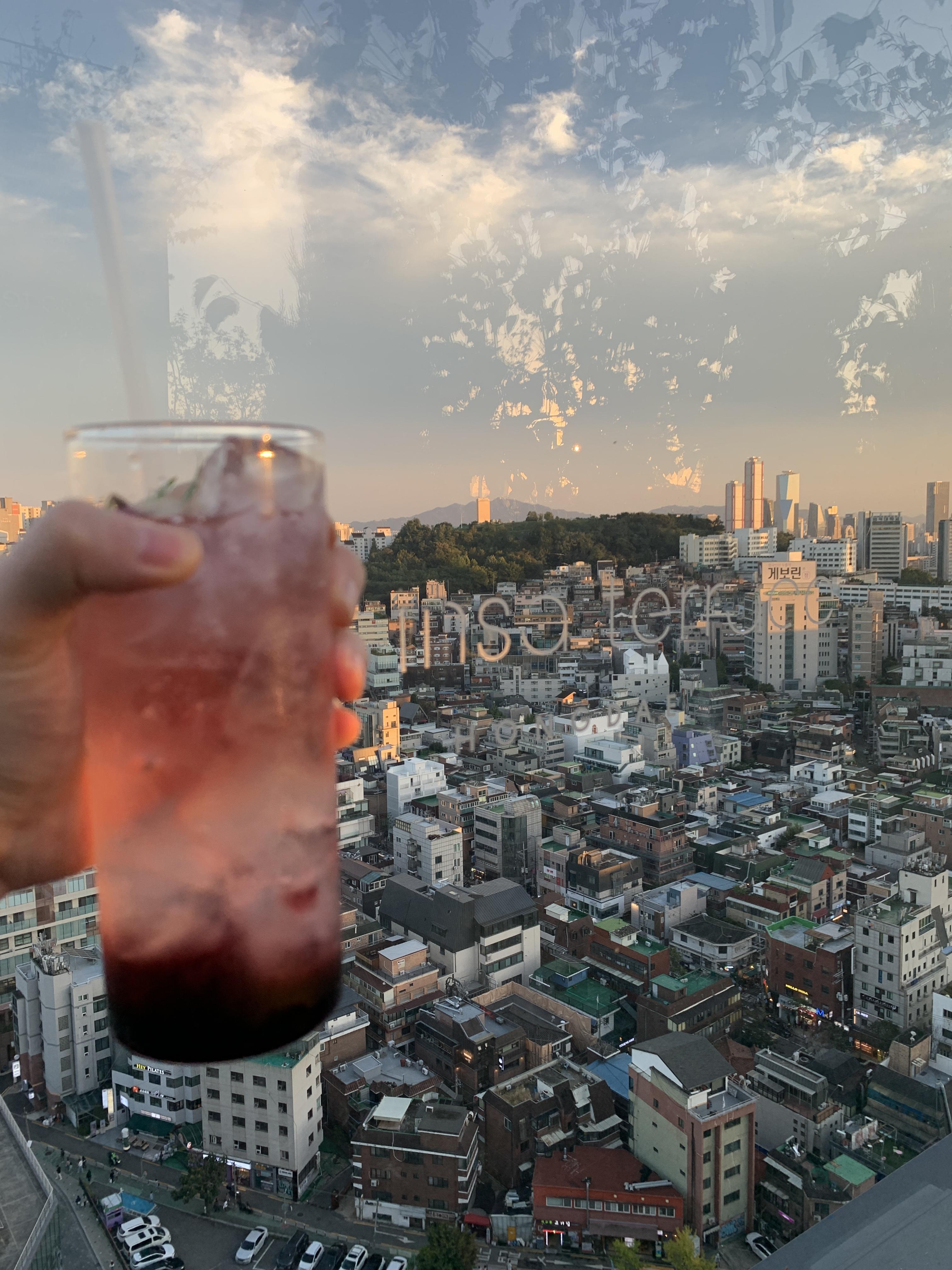 차가운 에이드를 잡고 루프탑에서 한컷 ~~ 홍대 전체가 보여이네요 ㅎㅎㅎ