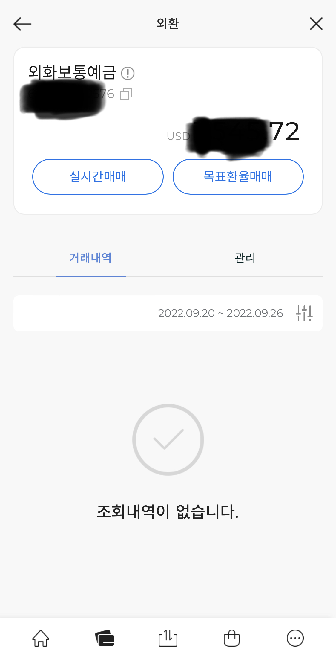 조회 버튼을 누르면 입출금 통장 외화 예금 통장이 있는데 일반적으로 에드센스 같은 경우에는 외화 예금으로 들어오기 때문에 외화 예금에는 얼마가 있고 두드린 통장에는 원화를 출금할 수 있는 통장이라고 보시면 되고요