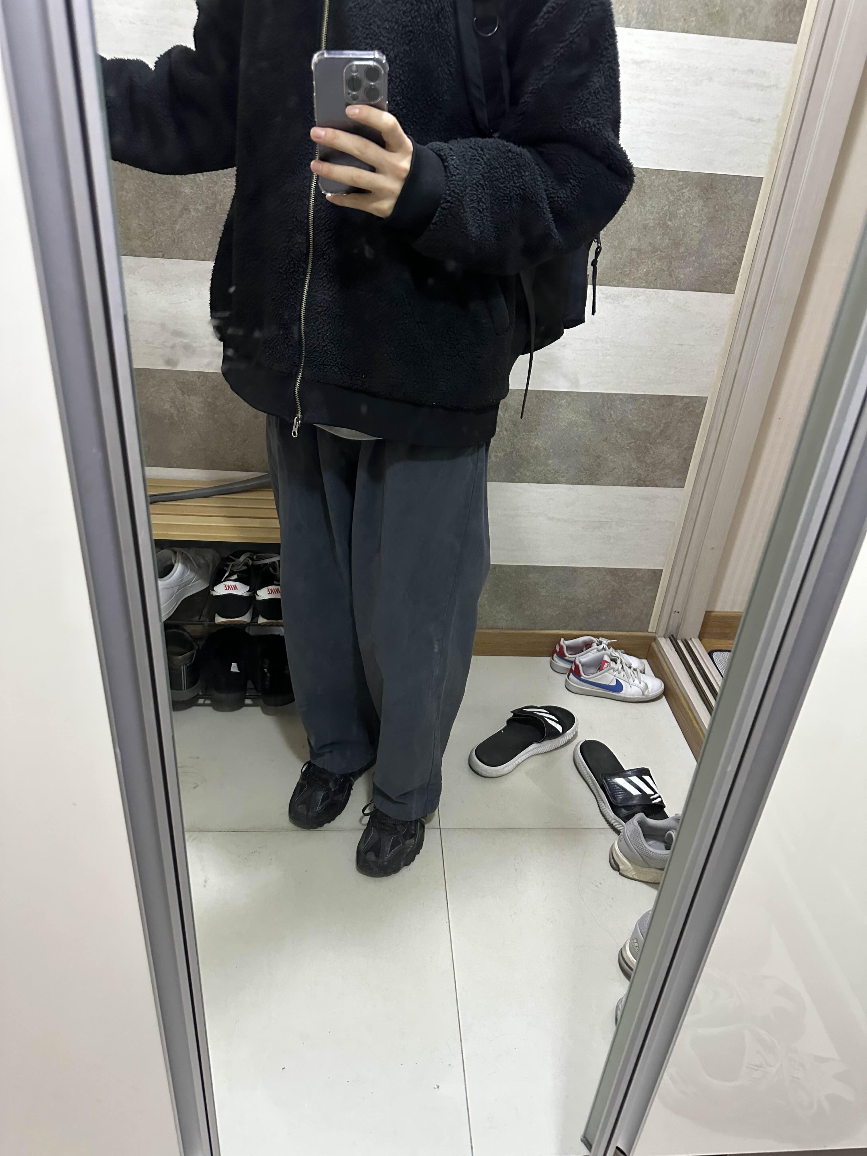 그 다음 코디는 다른 와이드한 회색 코튼 바지에 매칭한 거고요 이것도 생각보다 굉장히 만족스러워서 자주 이렇게 코디 매칭을 할 것 같습니다.