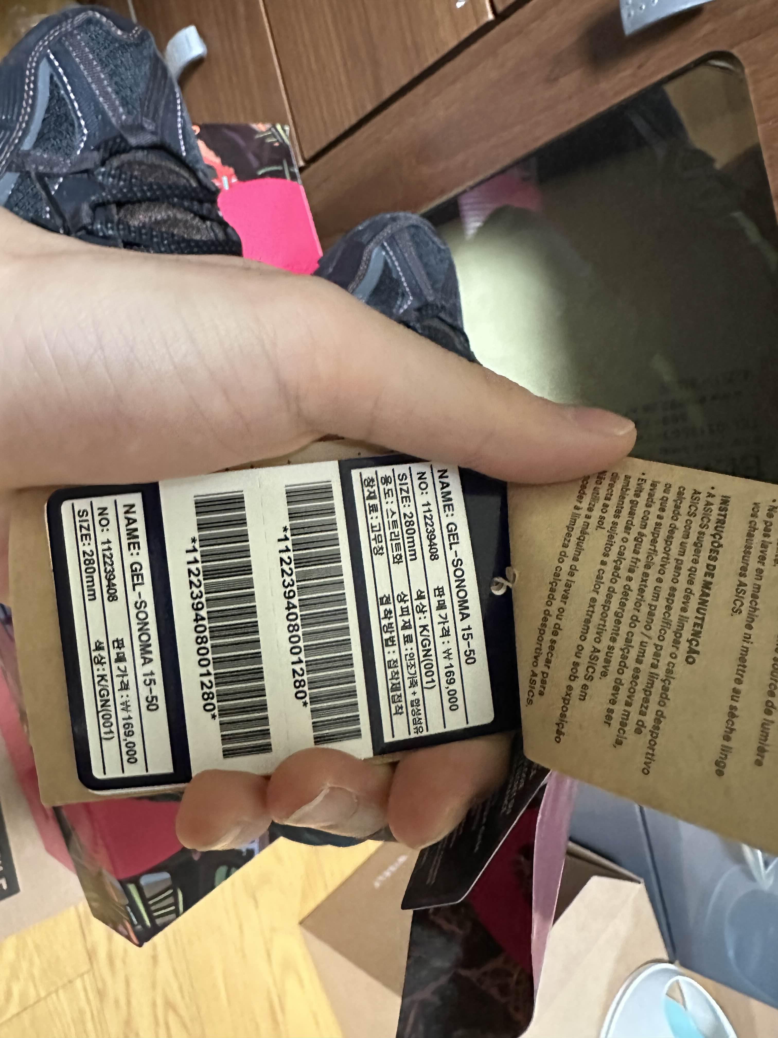 그리고 기존에서 판매 가격은16만 9천 원 정도고라고 있고 앤더슨벨과 아식스 콜라보에 다 태그가 붙어 있고요