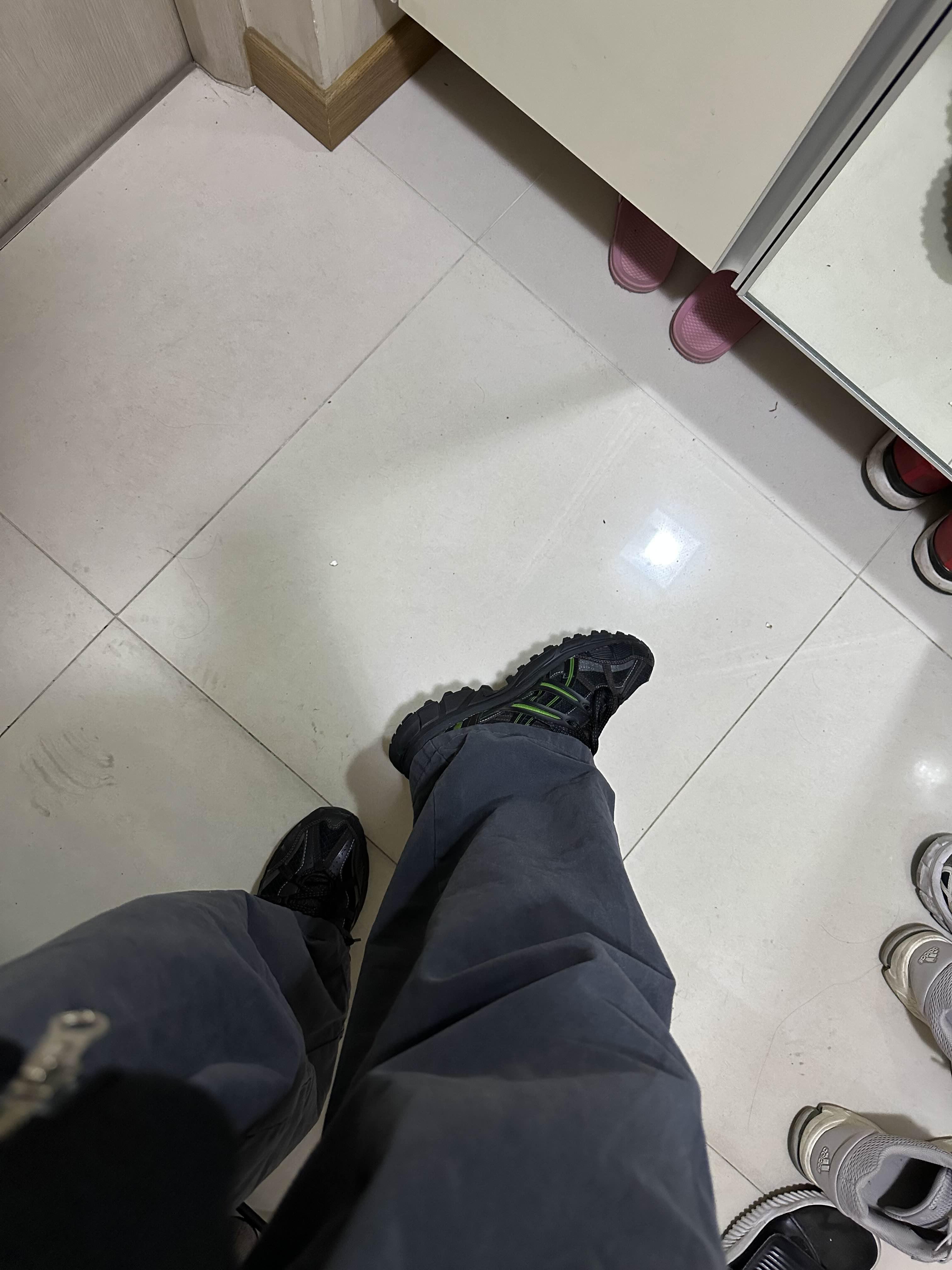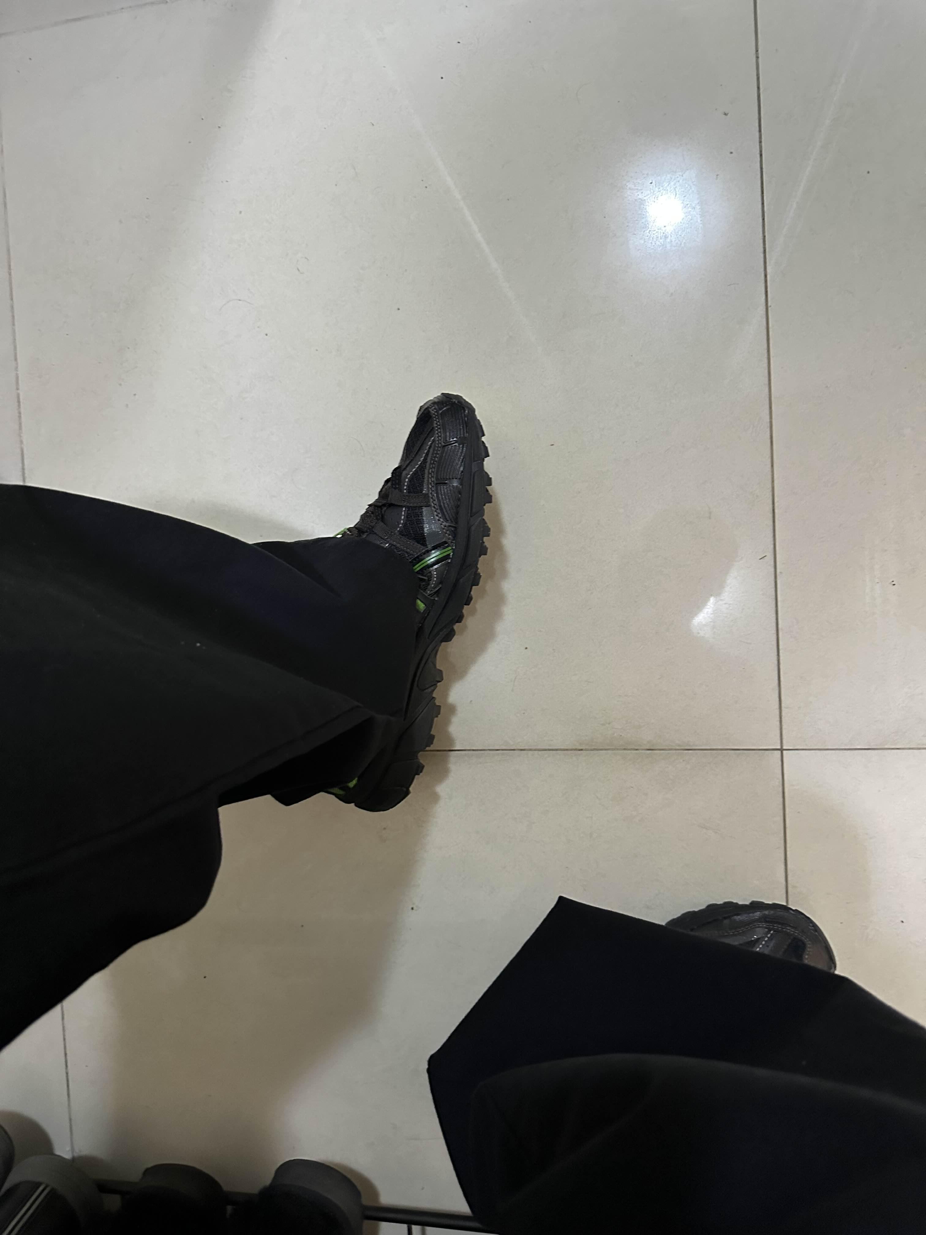 색깔은 검정색 이랑 초록색이 섞인 컬러이고 저는 기존에 동일한 제품 다른 색깔의 제품을 가지고 있는데 신을 보니까 정말 편하다고 느껴서 다른 색깔의 제품을 구매하기로 결정을 했습니다.