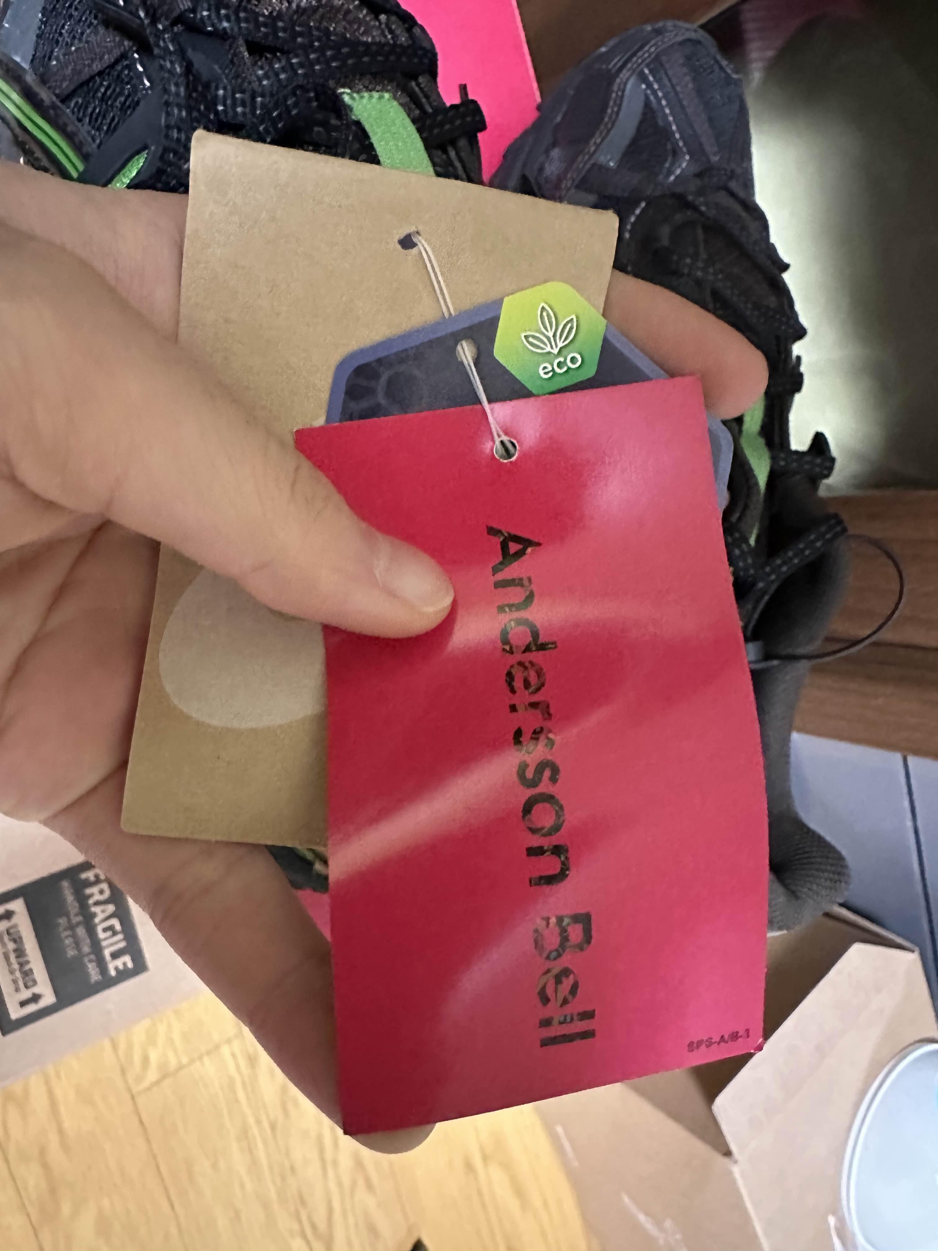 크림에서 인증을 했다고 아까 말씀드렸는데 크림에서 인증을 하니까 크림 텍이 붙어 오더라고요 이 철저한 검수 과정을 통해서 했다는 것을 확실히 알 수 있었고요 그 다음에 다음에 보시면 앤더슨벨 로고가 붙어 있는 태그가 있습니다.